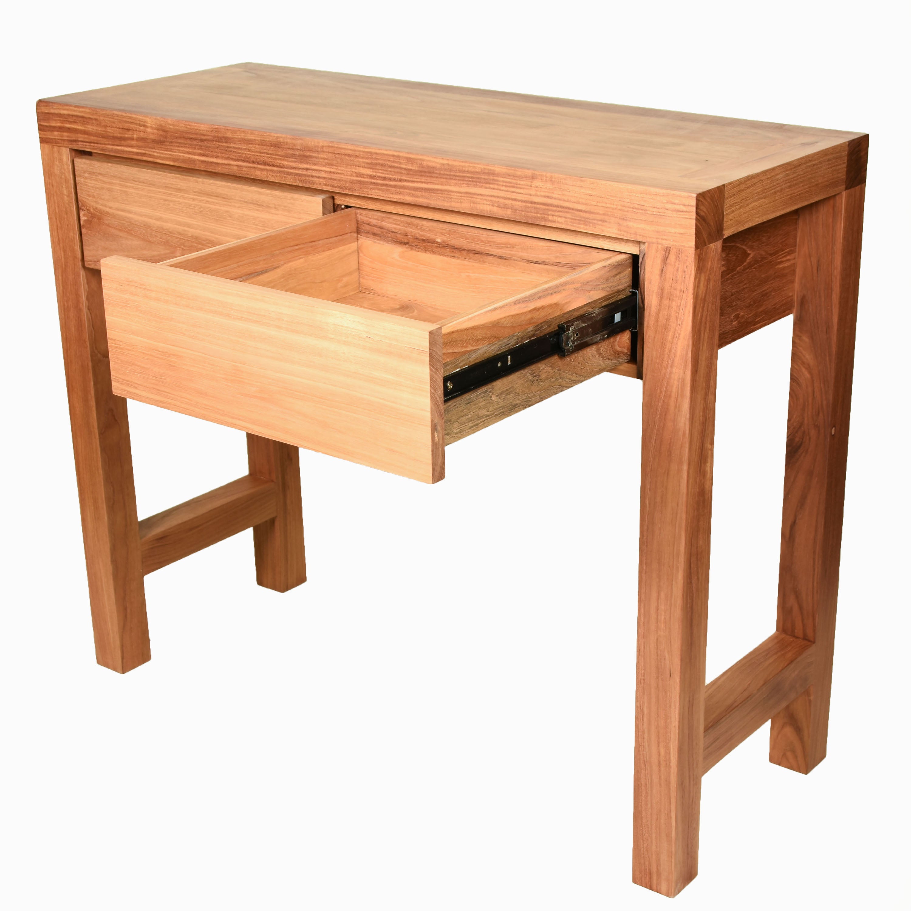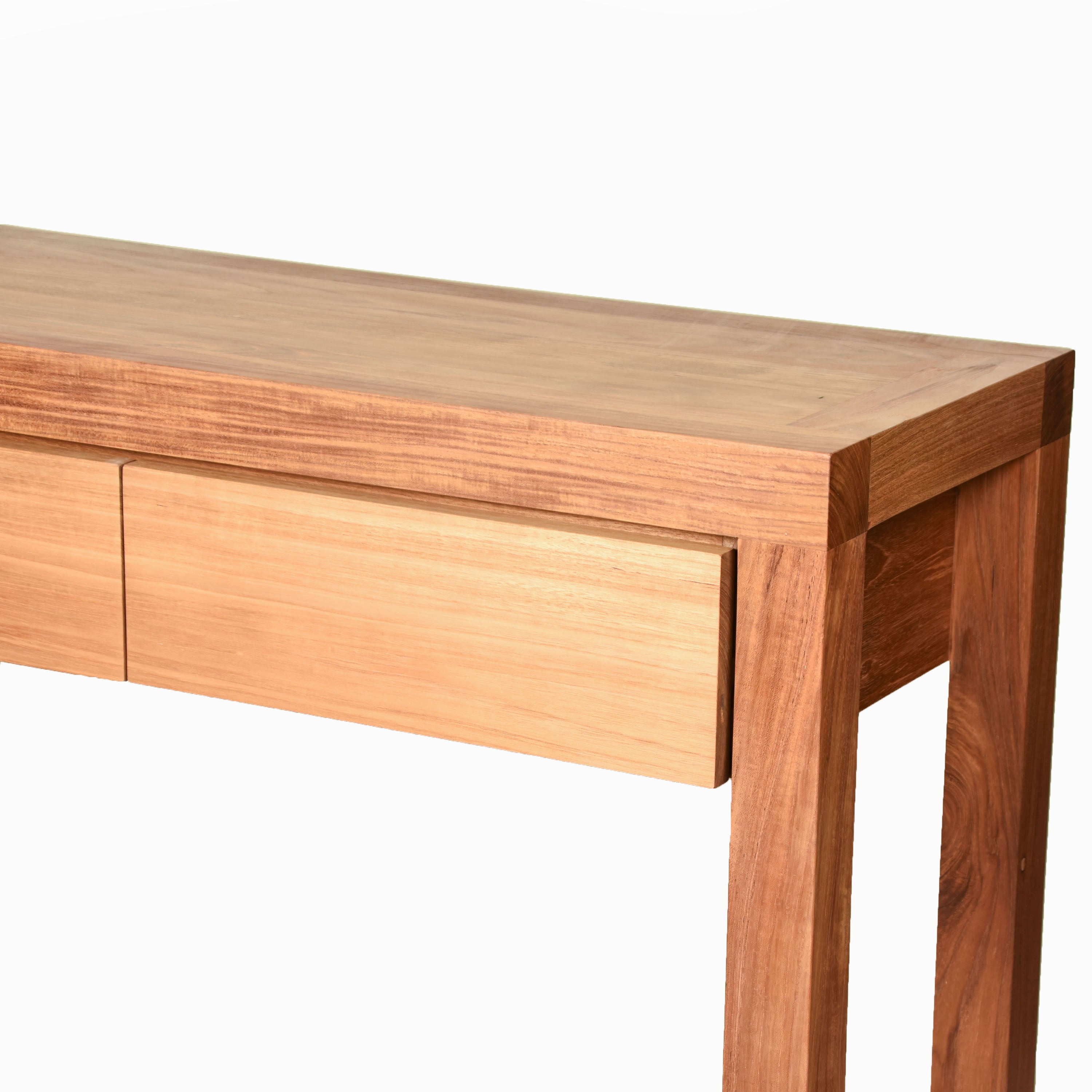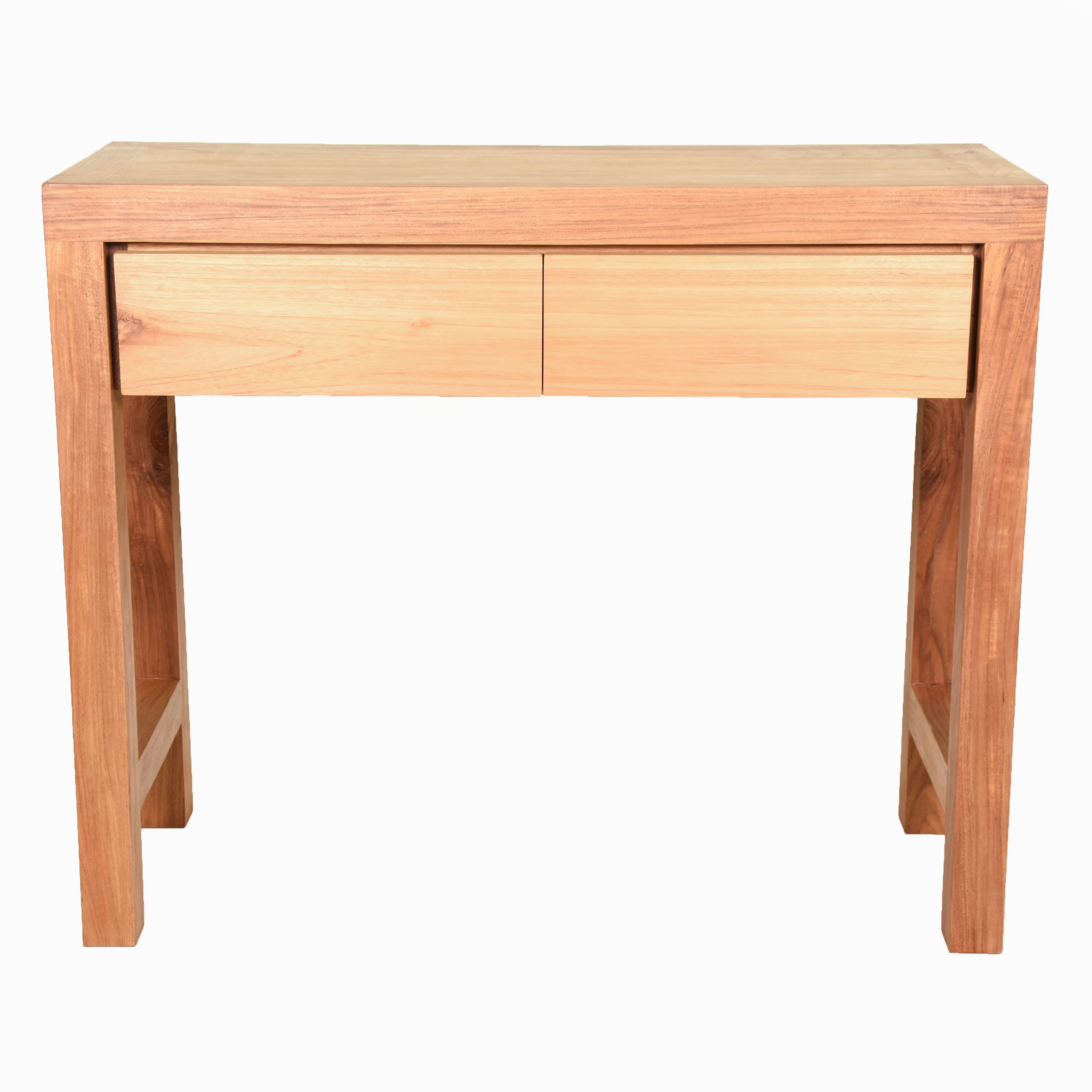 This contemporary Scandinavian-style 2-drawer console is meticulously crafted by fine craftsmen from sustainably sourced solid teak—ensuring both durability and eco-friendly luxury. The console is finished with a natural wax, enhancing the teak's natural grain and providing a smooth, matte finish that highlights the wood's beauty.