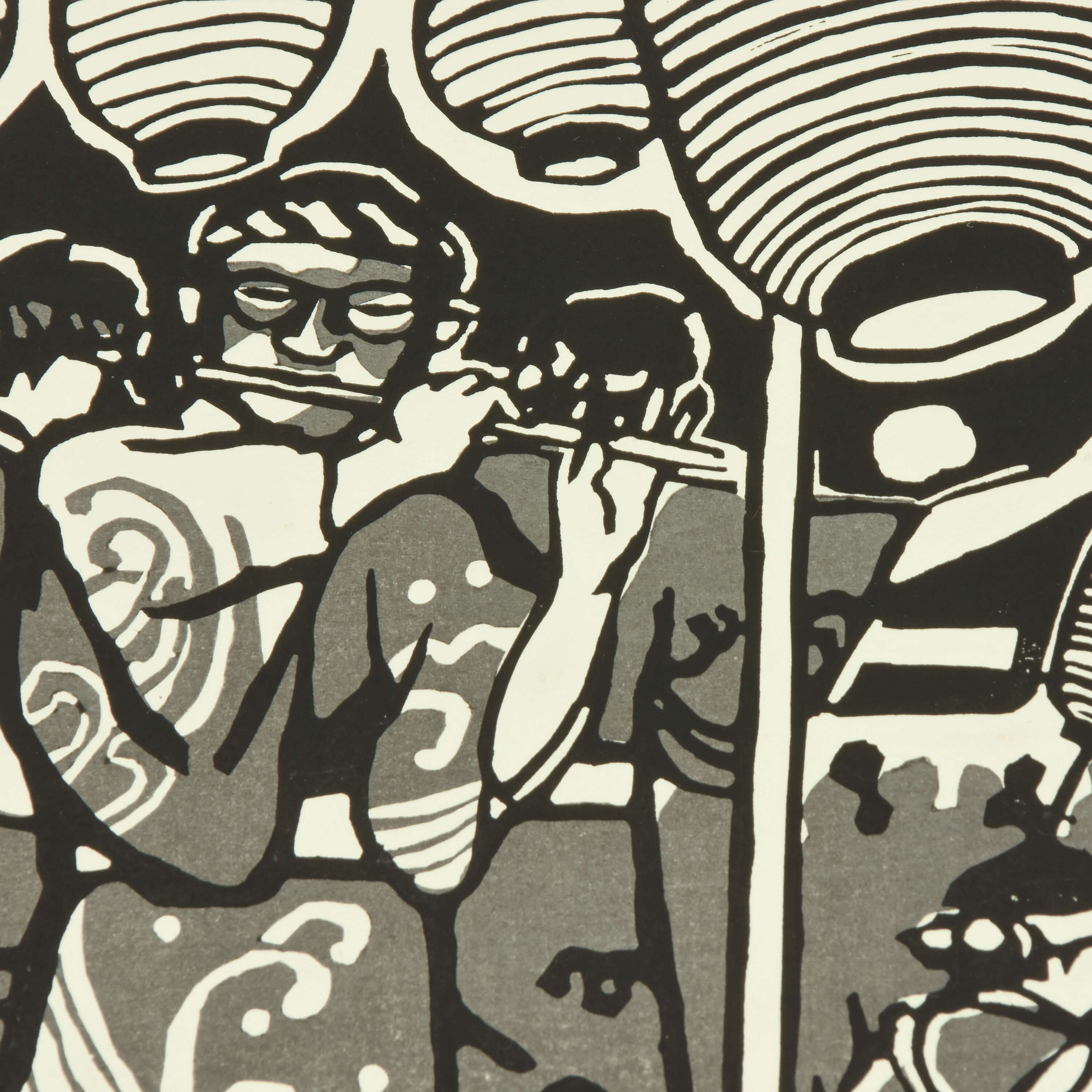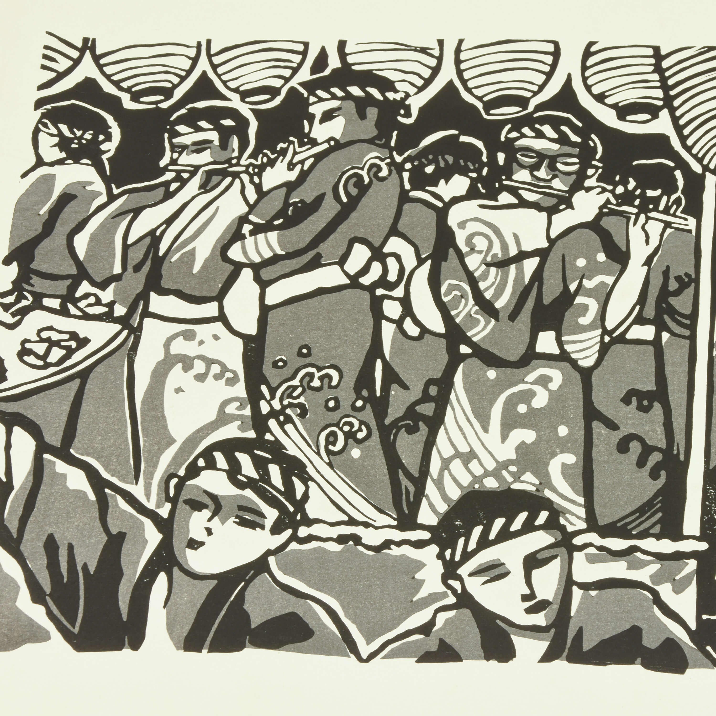 This collection of woodblock prints by the esteemed artist Ido Masao forms part of his "The Six Great Festivals" series, created in 1985. These prints are rare, as they were never completed with the traditional hand-colored finish, edition numbers, artist signatures, or seals. They represent a unique glimpse into Ido Masao's studio process and are one of the few surviving examples from this series.
