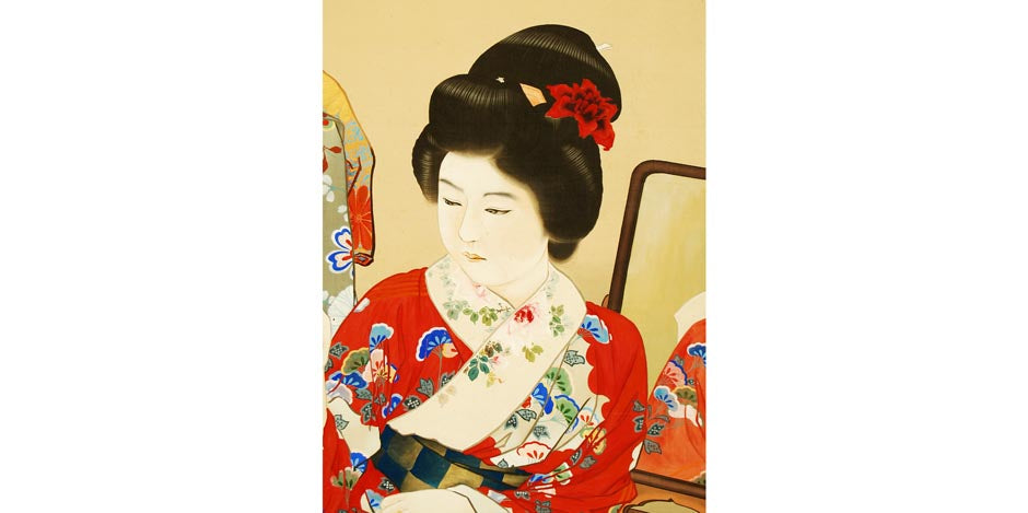 A beautiful example of Taisho-era Japanese screen art, this piece would be a wonderful addition to collections of vintage Japanese screens, geisha and Maiko-themed artwork, or Taisho period art.