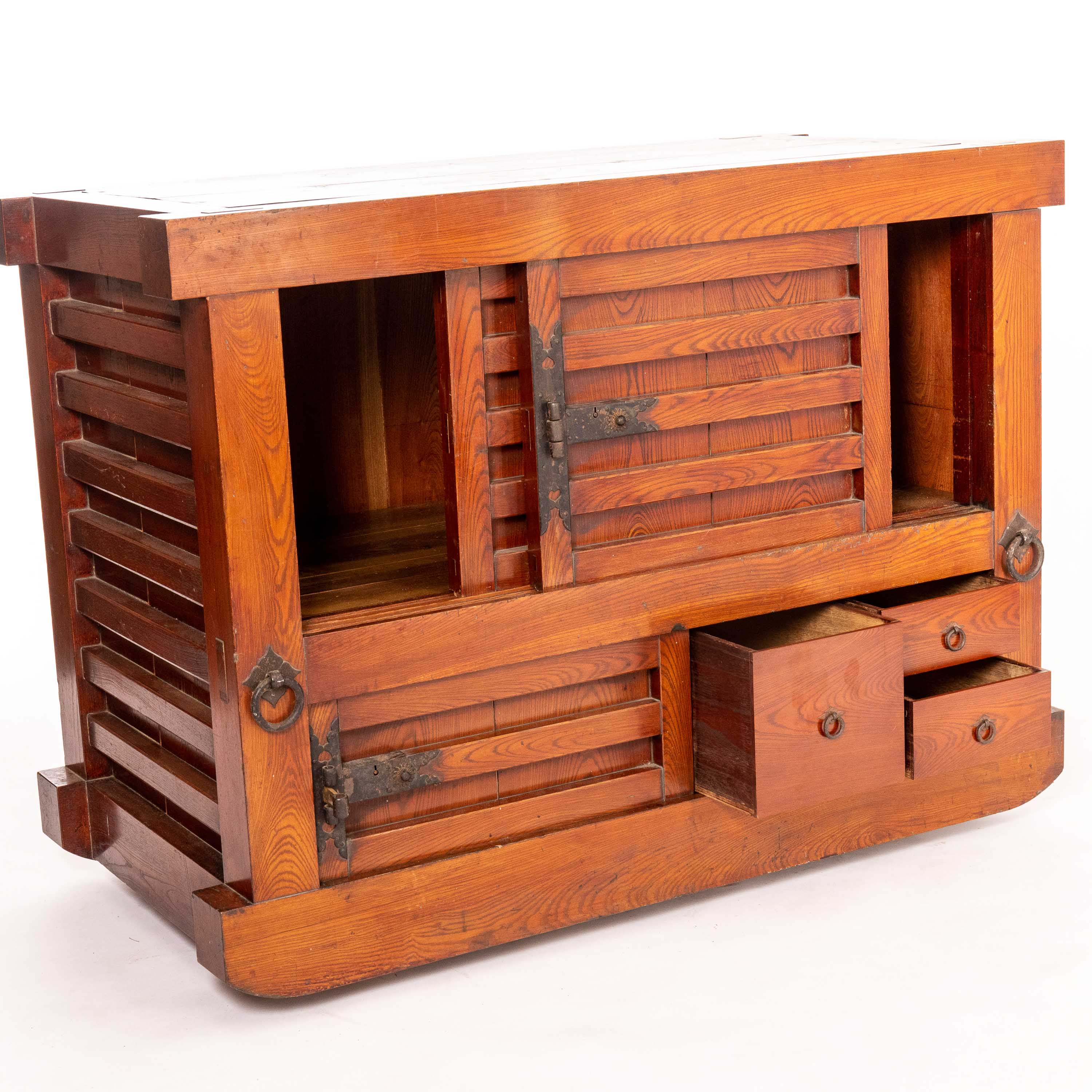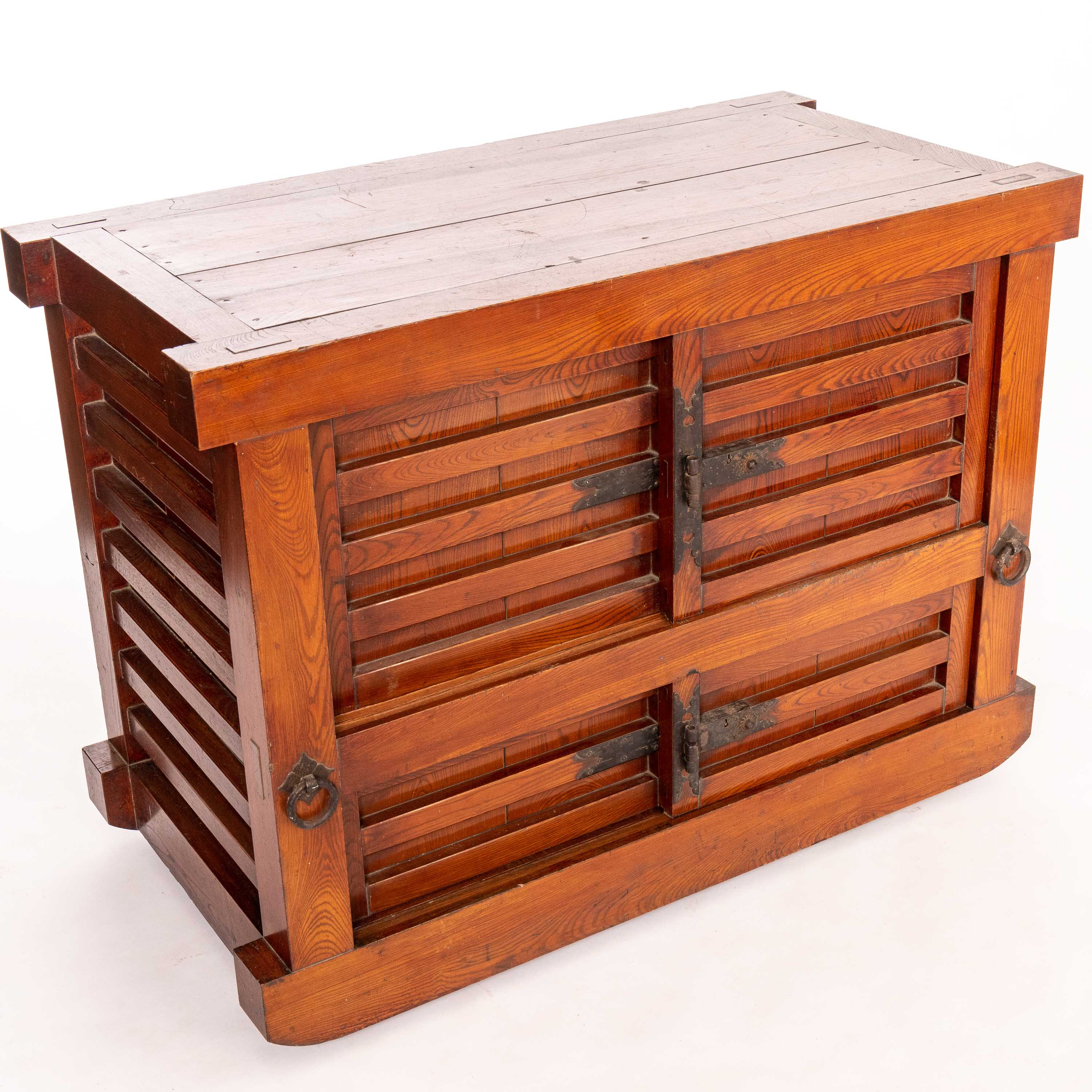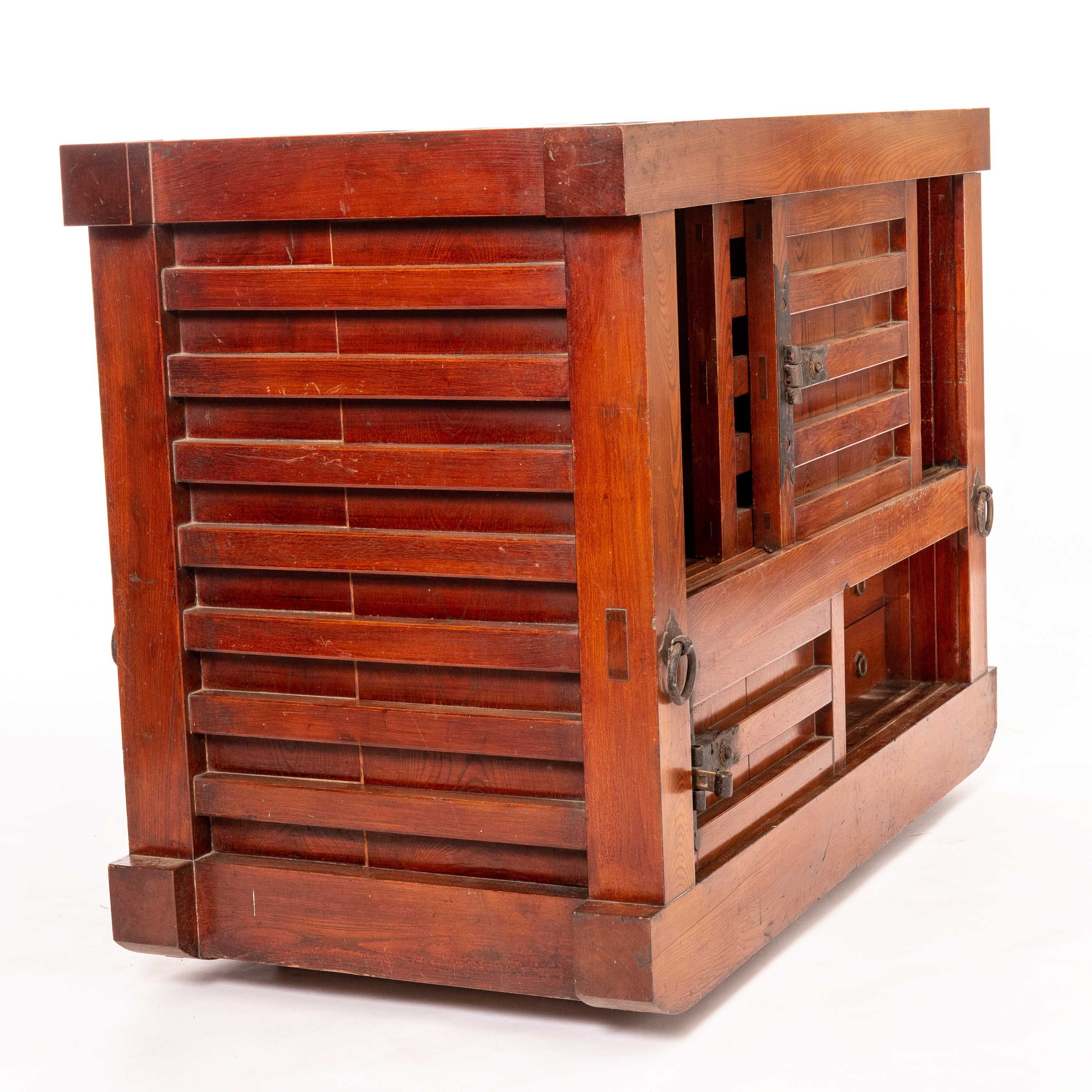 Materials: Zelkova wood, paulownia drawer linings, iron hardware, lacquer finish