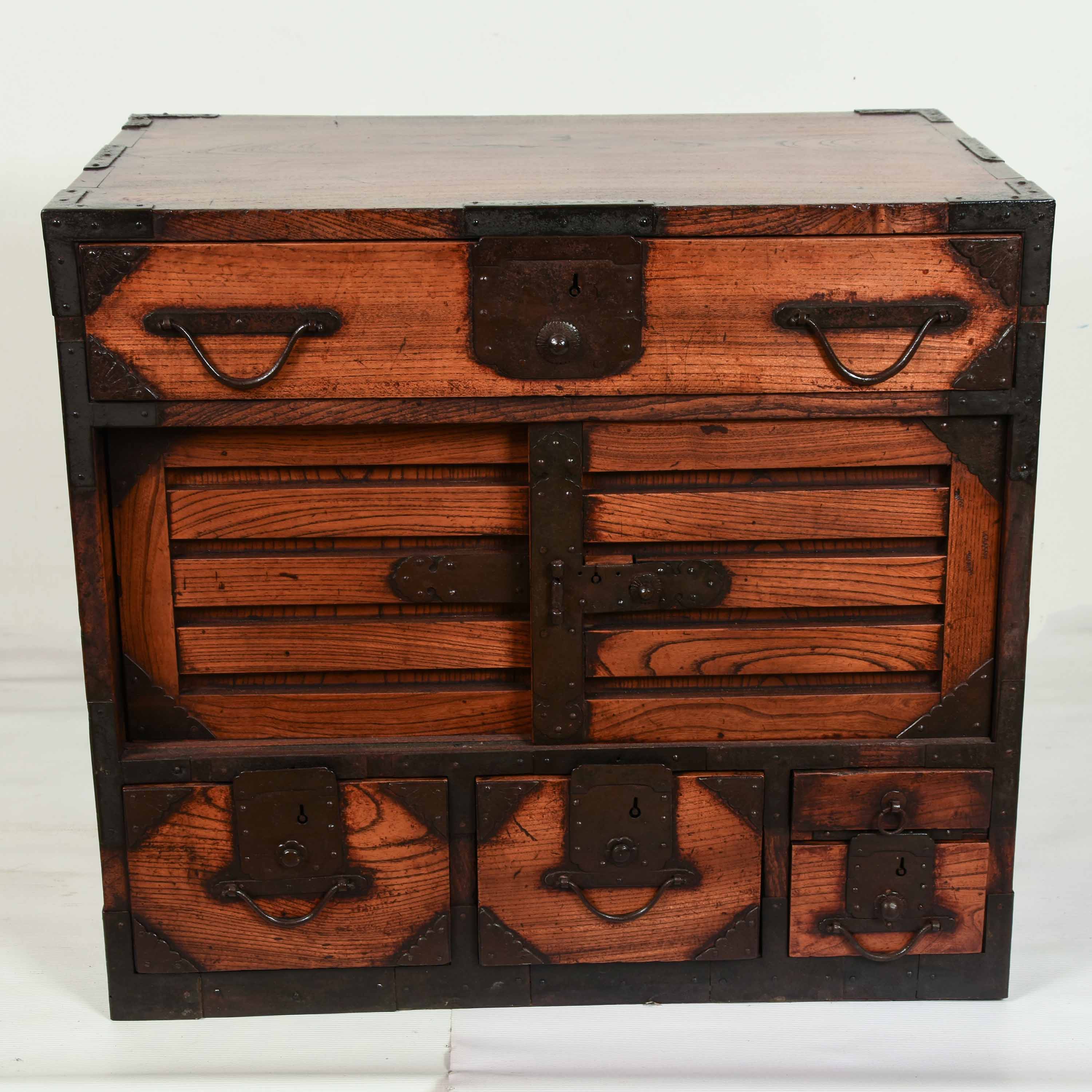 This Fune Dansu is a rare and collectible example of Japanese maritime furniture, ideal for collectors or as a statement piece in a modern interior, offering a tangible connection to Japan’s Edo-period maritime history.
