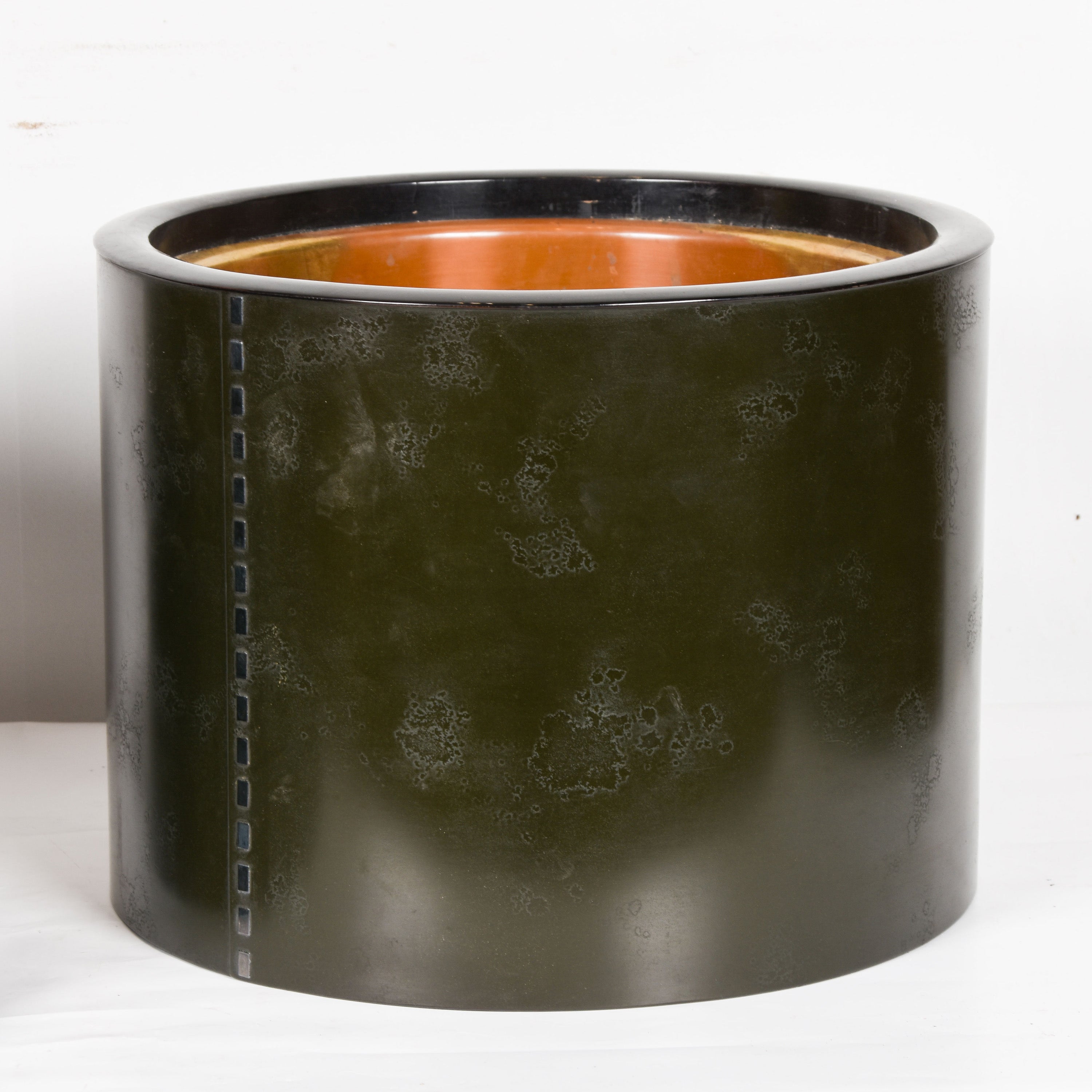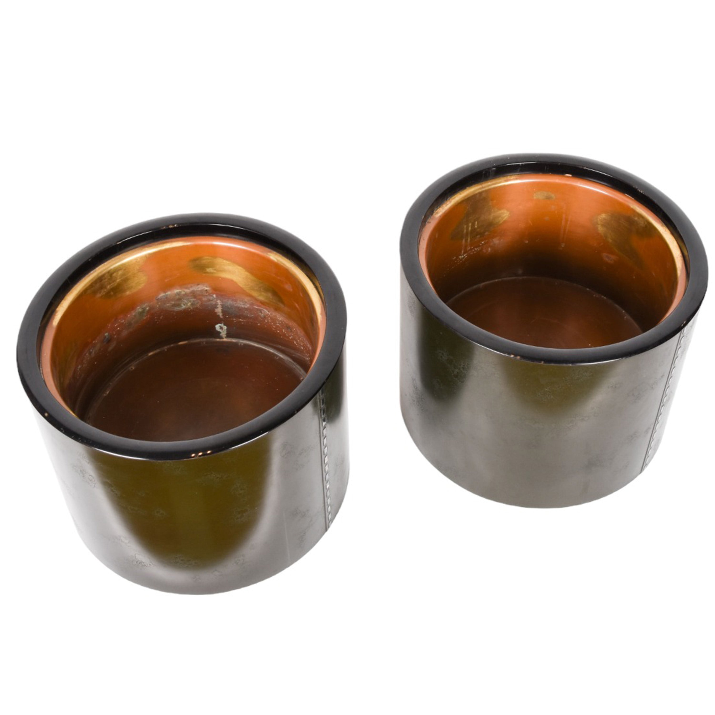 A pair of Japanese hibachi, charcoal braziers with an abstract, textured design.