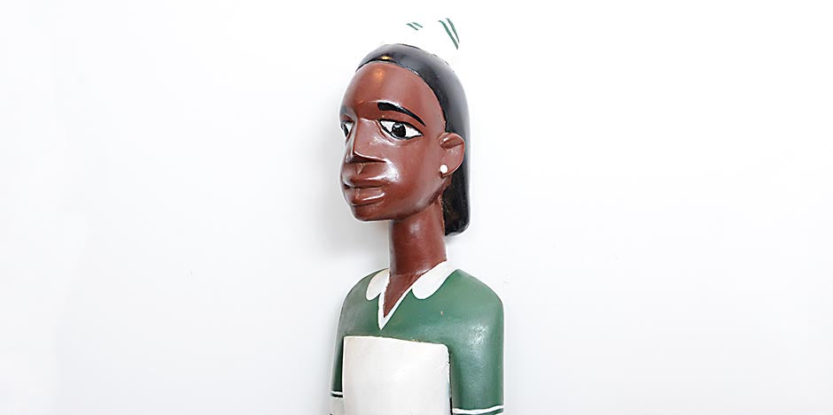 Contemporary colonial wooden statue of a Nurse, from Ghana.