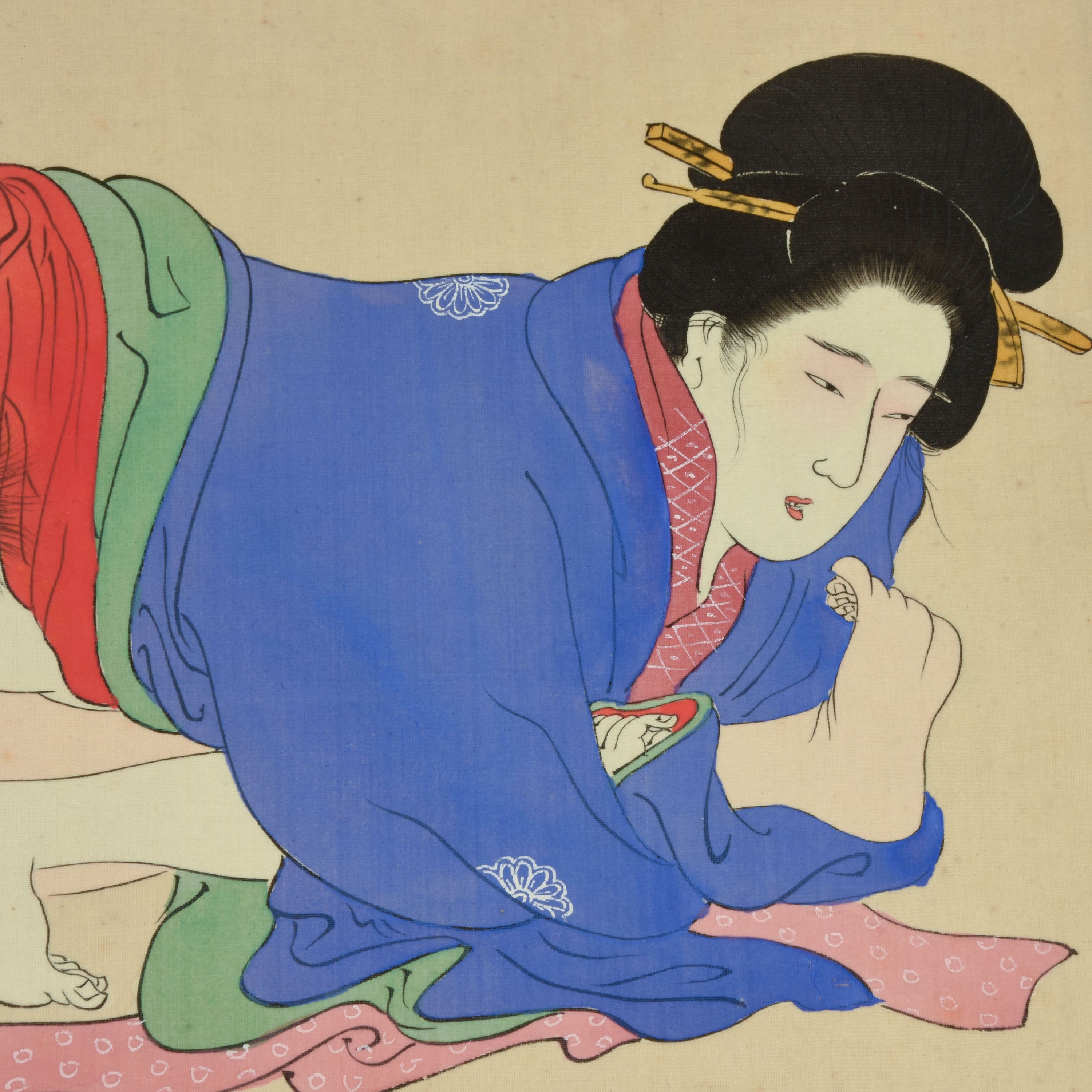 Shunga was appreciated across social classes in the period and reflects the aesthetic and daily life of the chōnin class, capturing themes of romance, eroticism, and human interaction with elegance and subtlety. This piece is a rare collectible for those interested in Japanese art, cultural history, and erotic ukiyo-e.