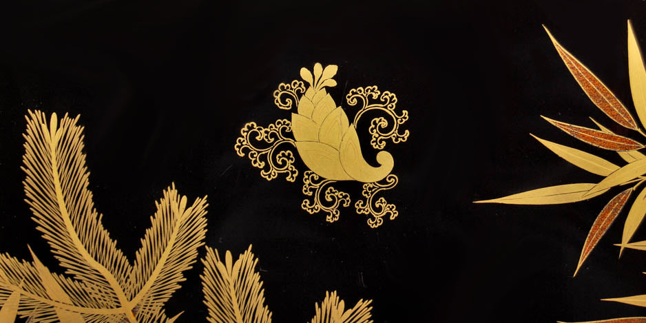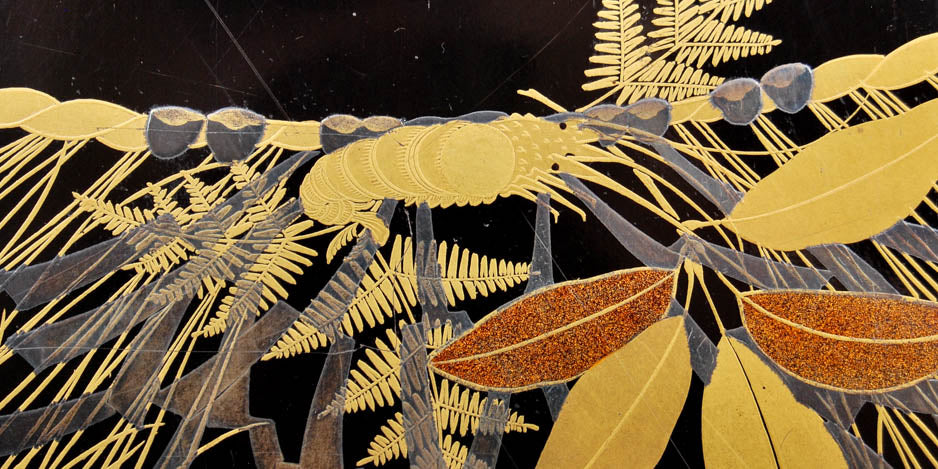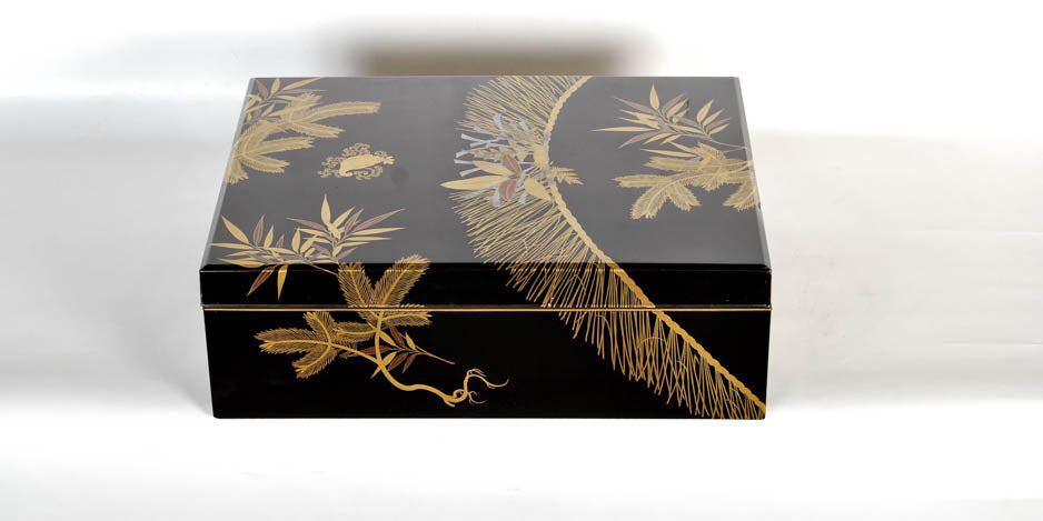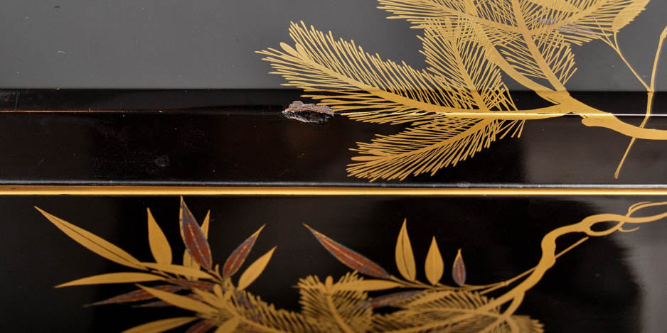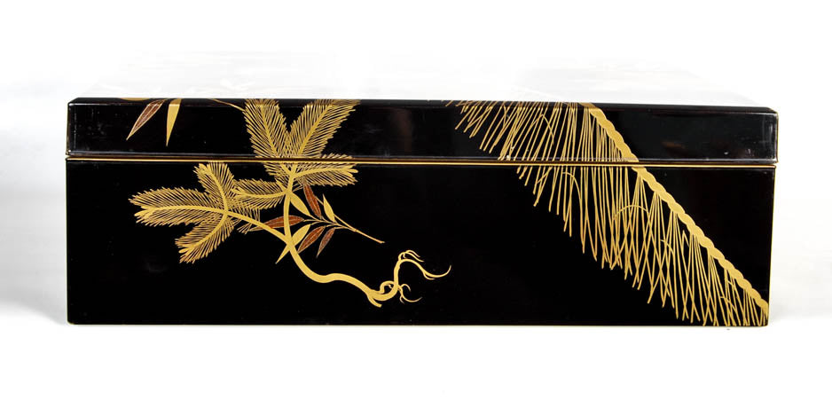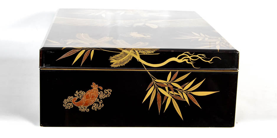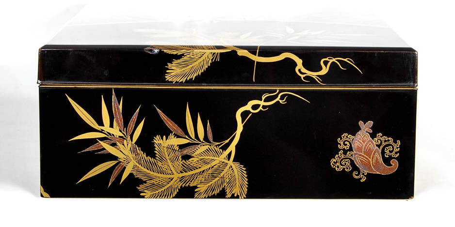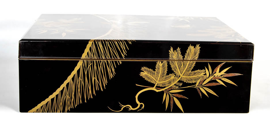 Antique Japanese lacquer document box with a pine tree design - Meiji period, early 20th century.