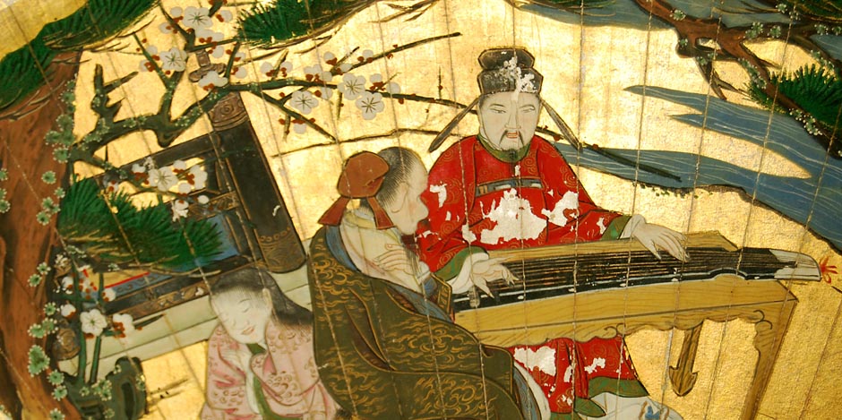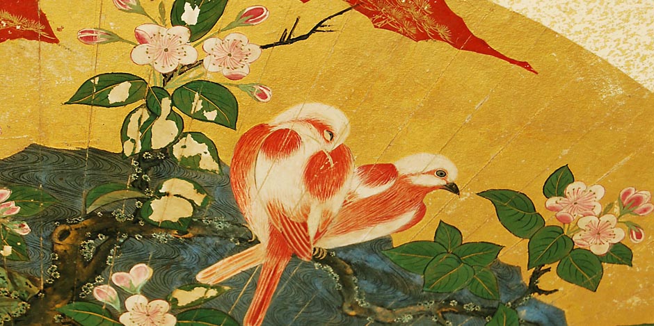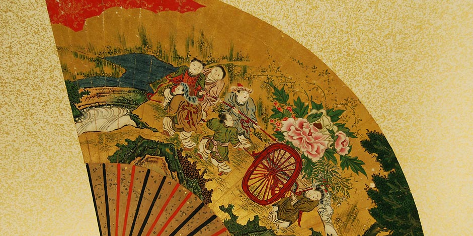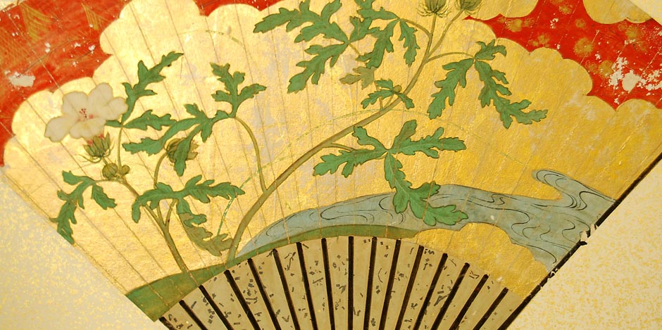 Antique Japanese screen with fans