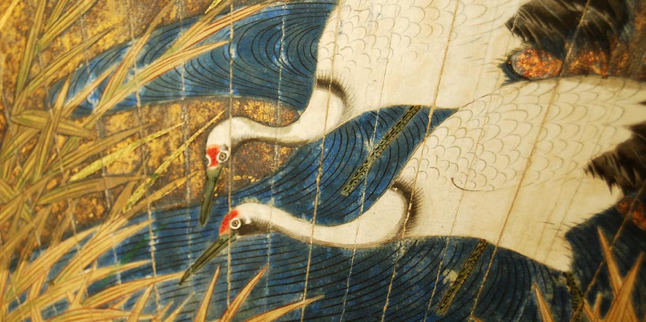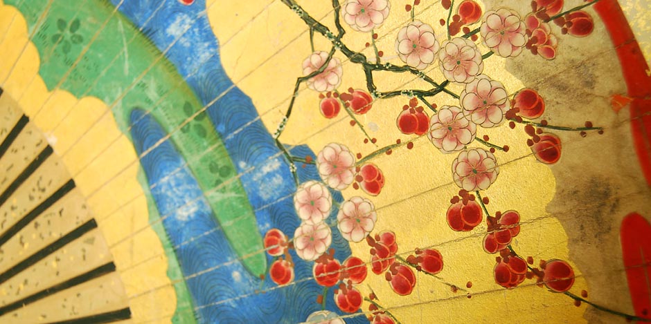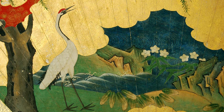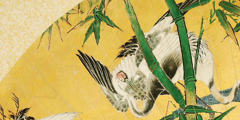 The gold speckled paper enhances the luminous quality of the work, adding a layer of depth and sophistication to the fans’ vibrant colors. The combination of the sensu fans and the shimmering background reflects the opulence and craftsmanship characteristic of Meiji-era decorative arts. Though the screen itself is newly made, the Meiji-era fans bring a timeless, historical charm, making this piece a striking fusion of old and new.