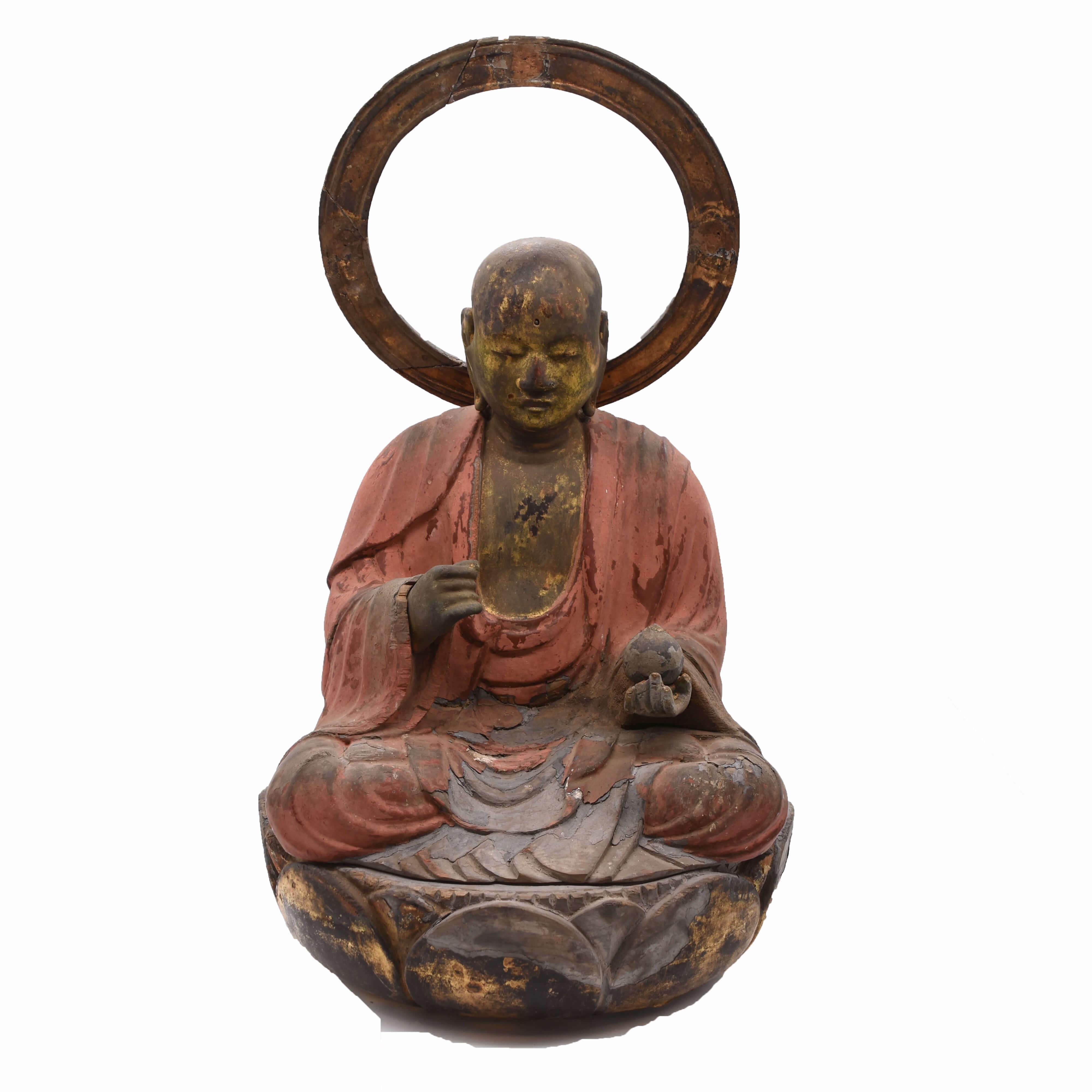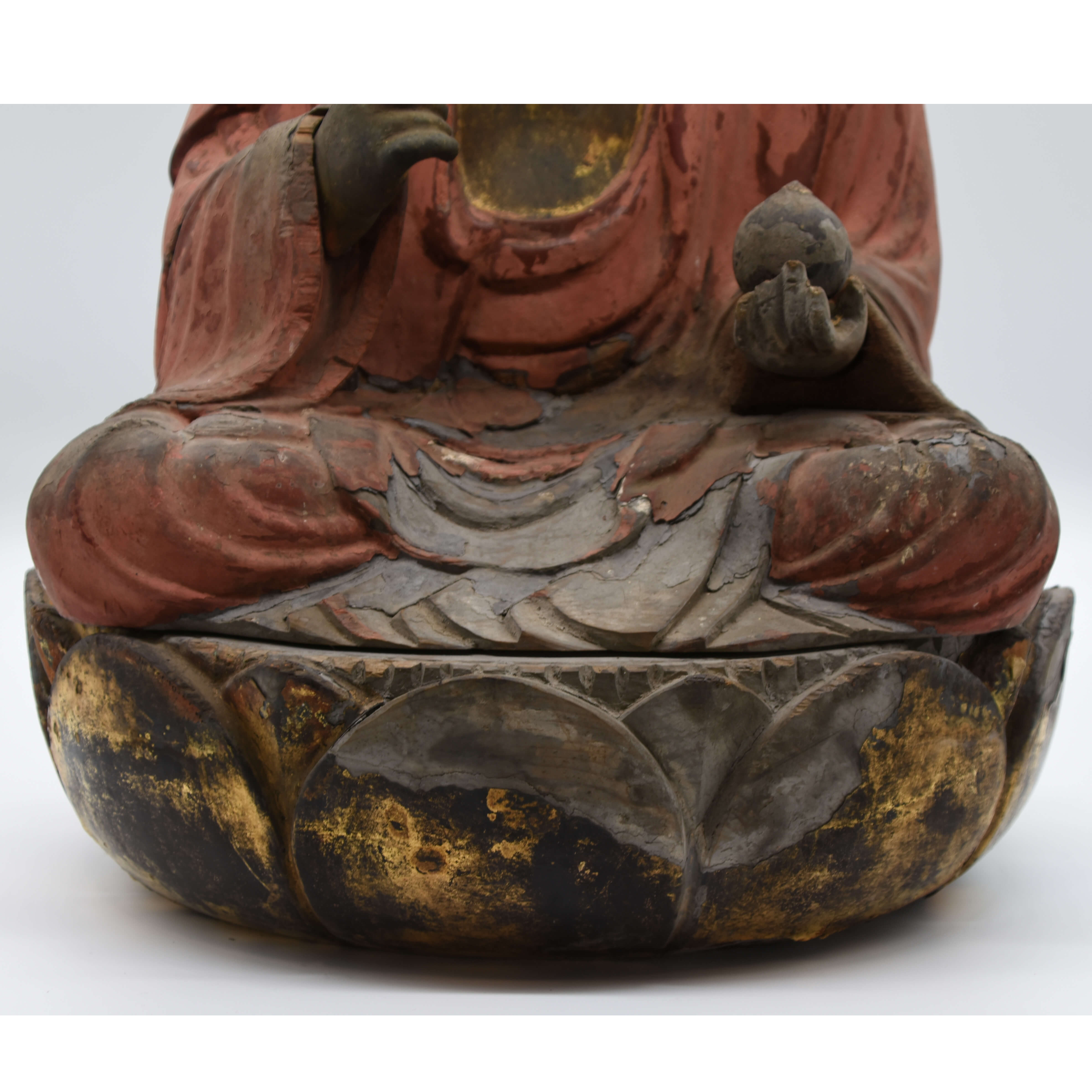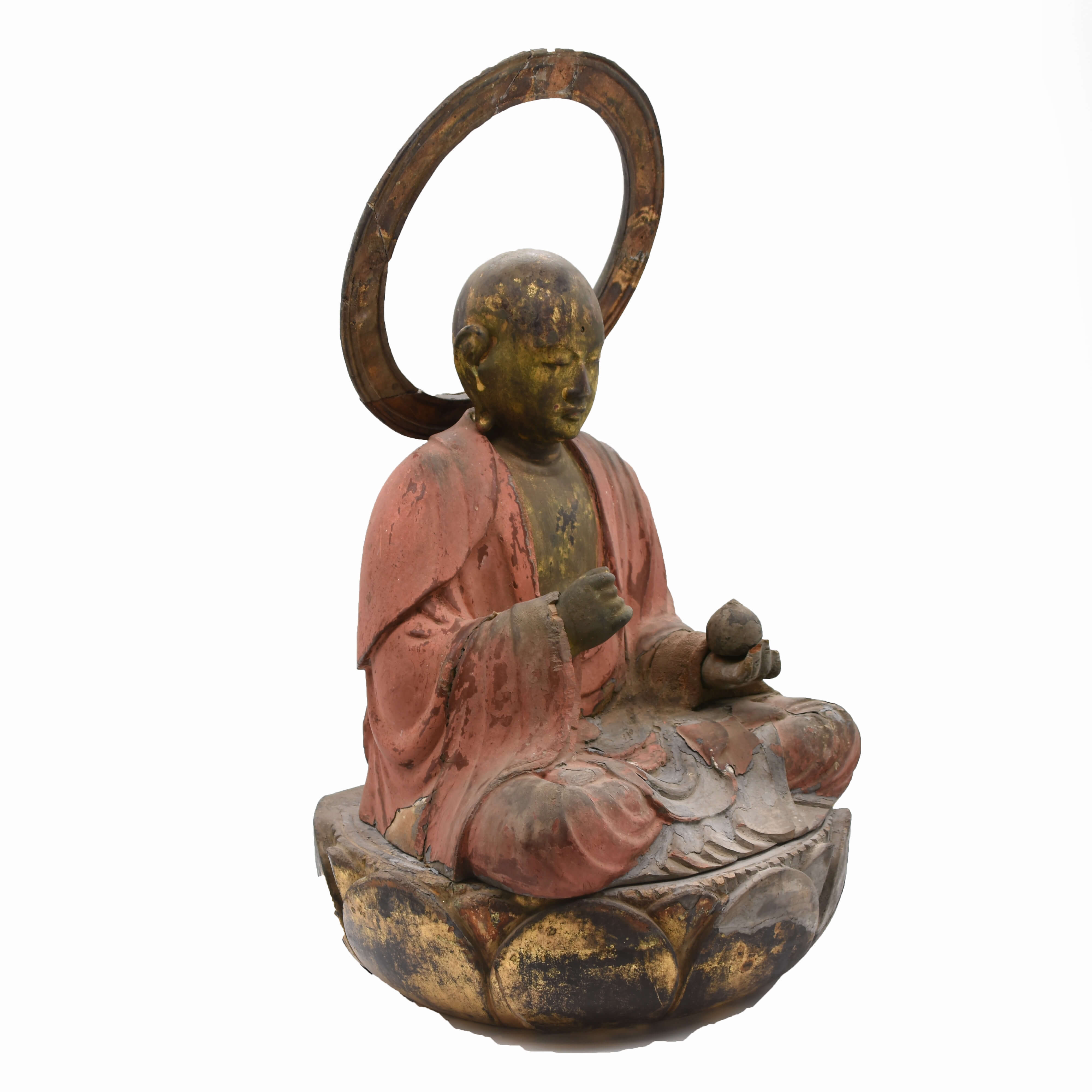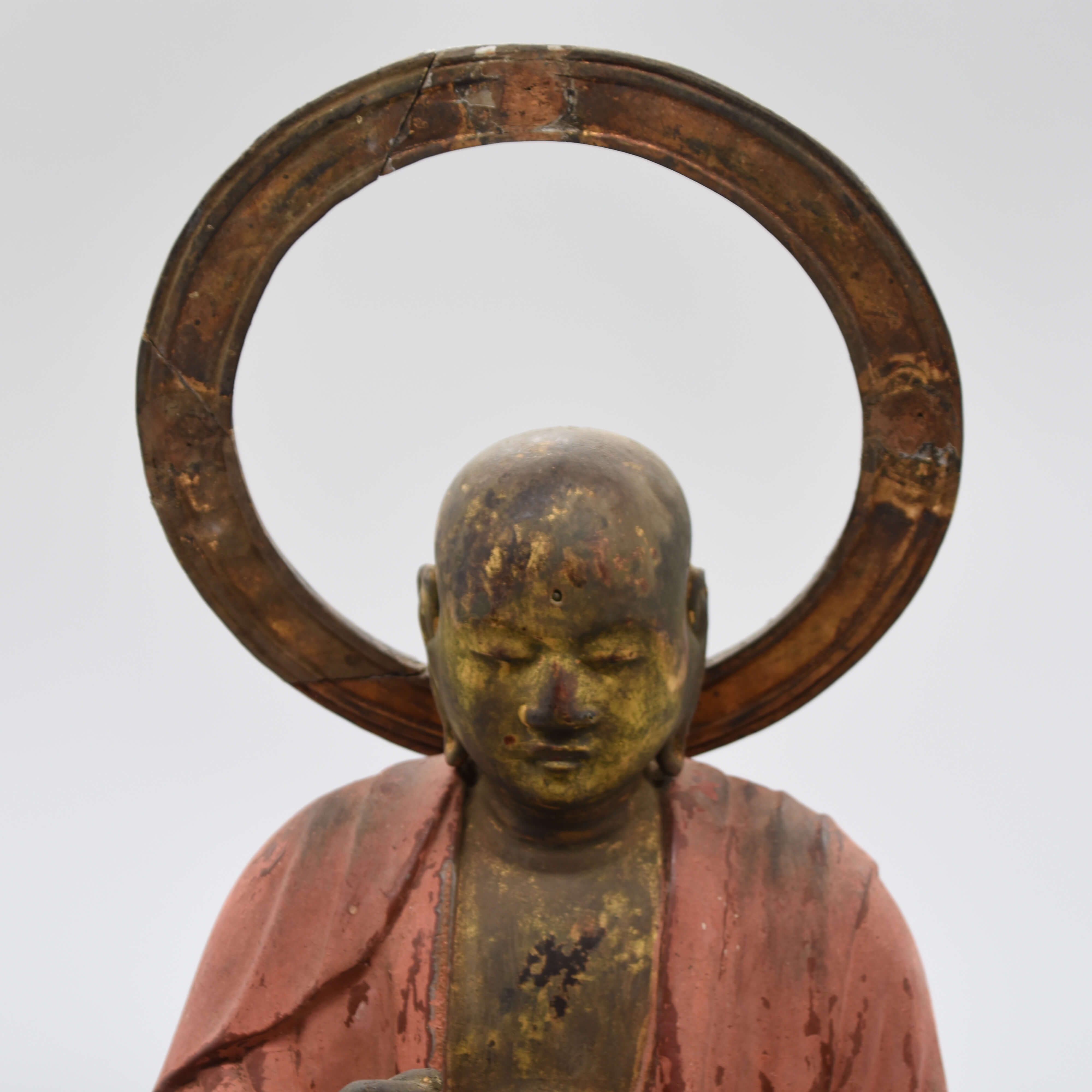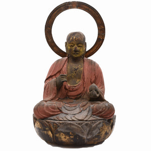 Japanese seated buddha Jizo - Bosatsu (Kṣitigarbha) on a gilded lotus base.