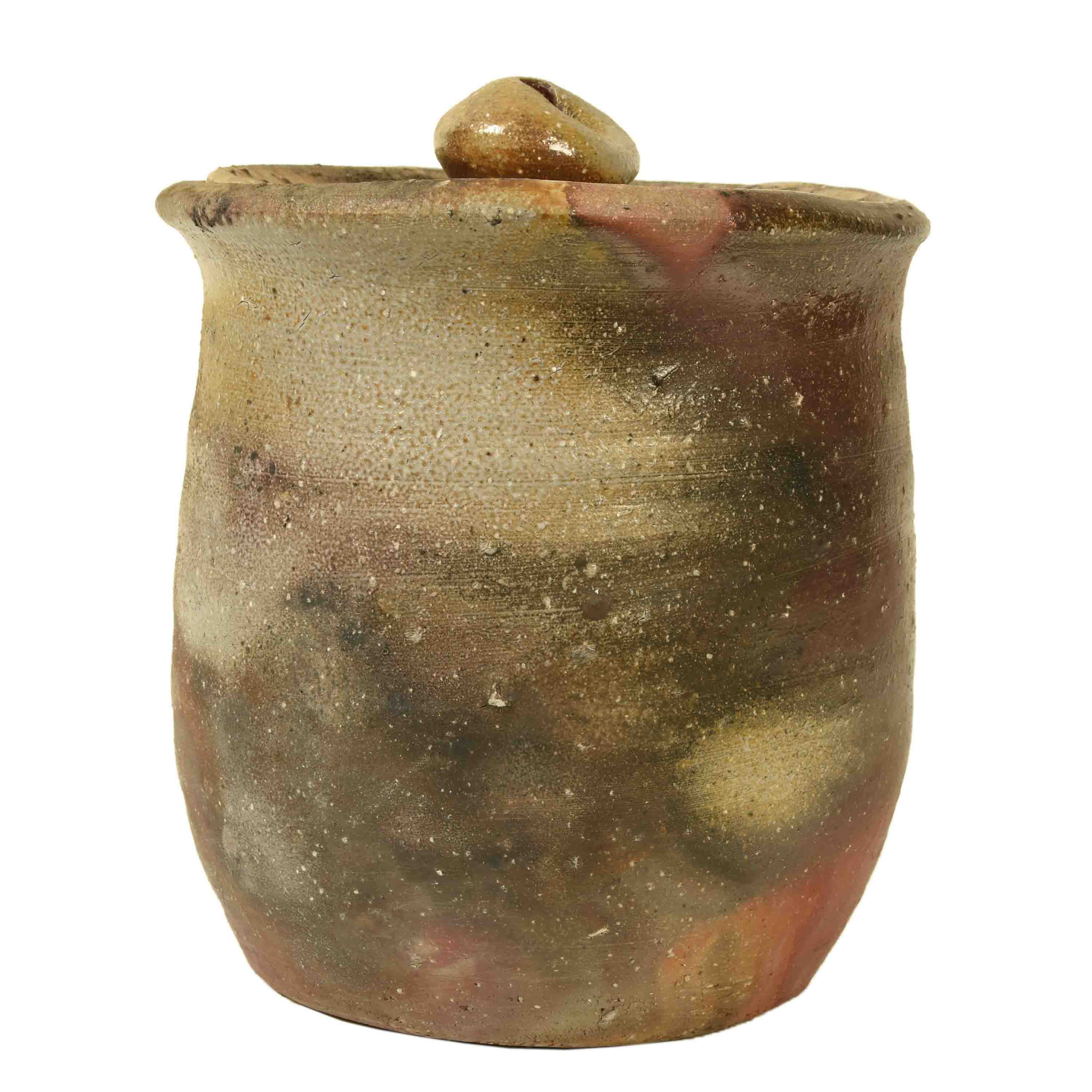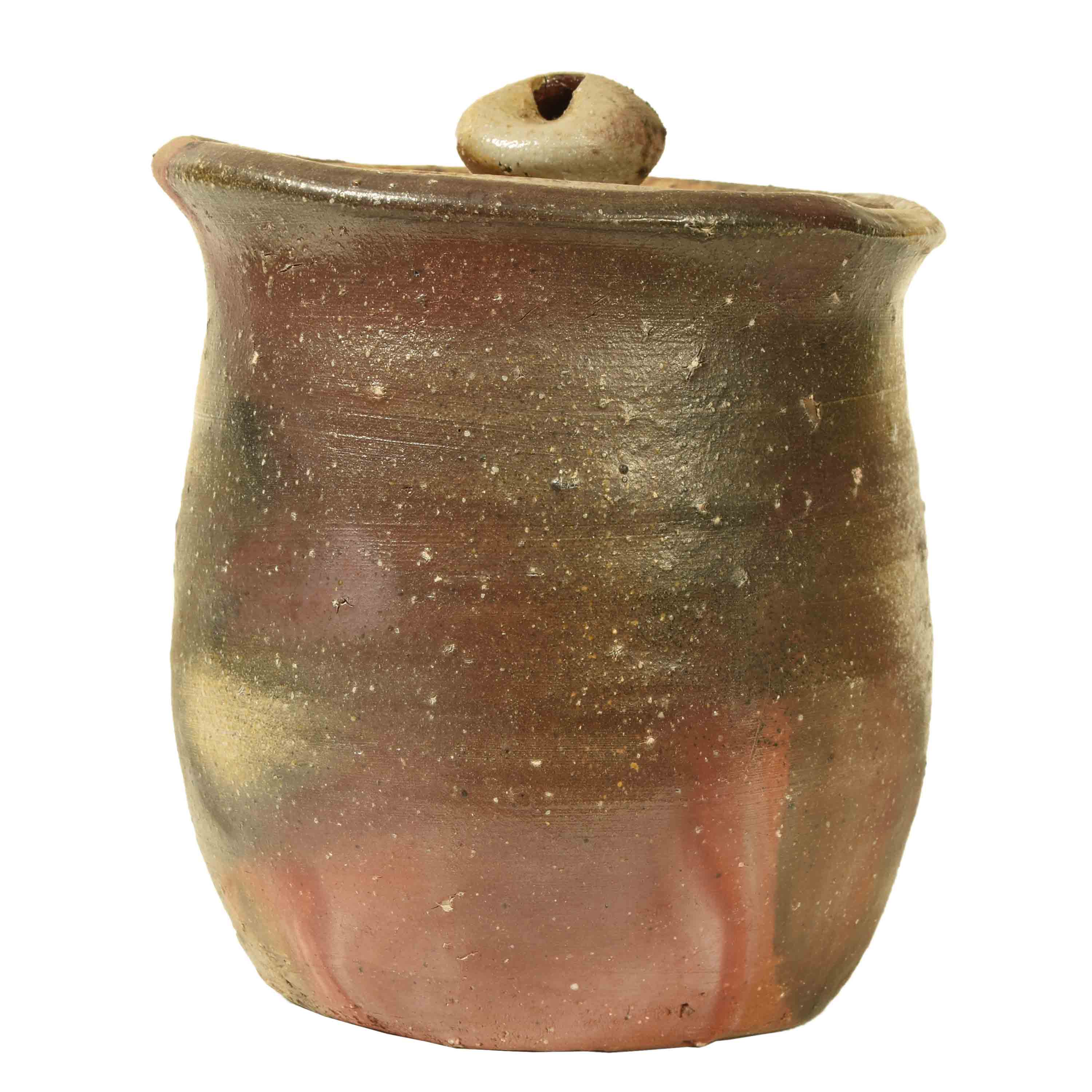 A Japanese Bizen pottery mizusashi, a water pot used for tea ceremony. Bizenware is one of the ancient kilns in Japan, with a history dating back 1000 years. It is highly valued for its purifying properties.
