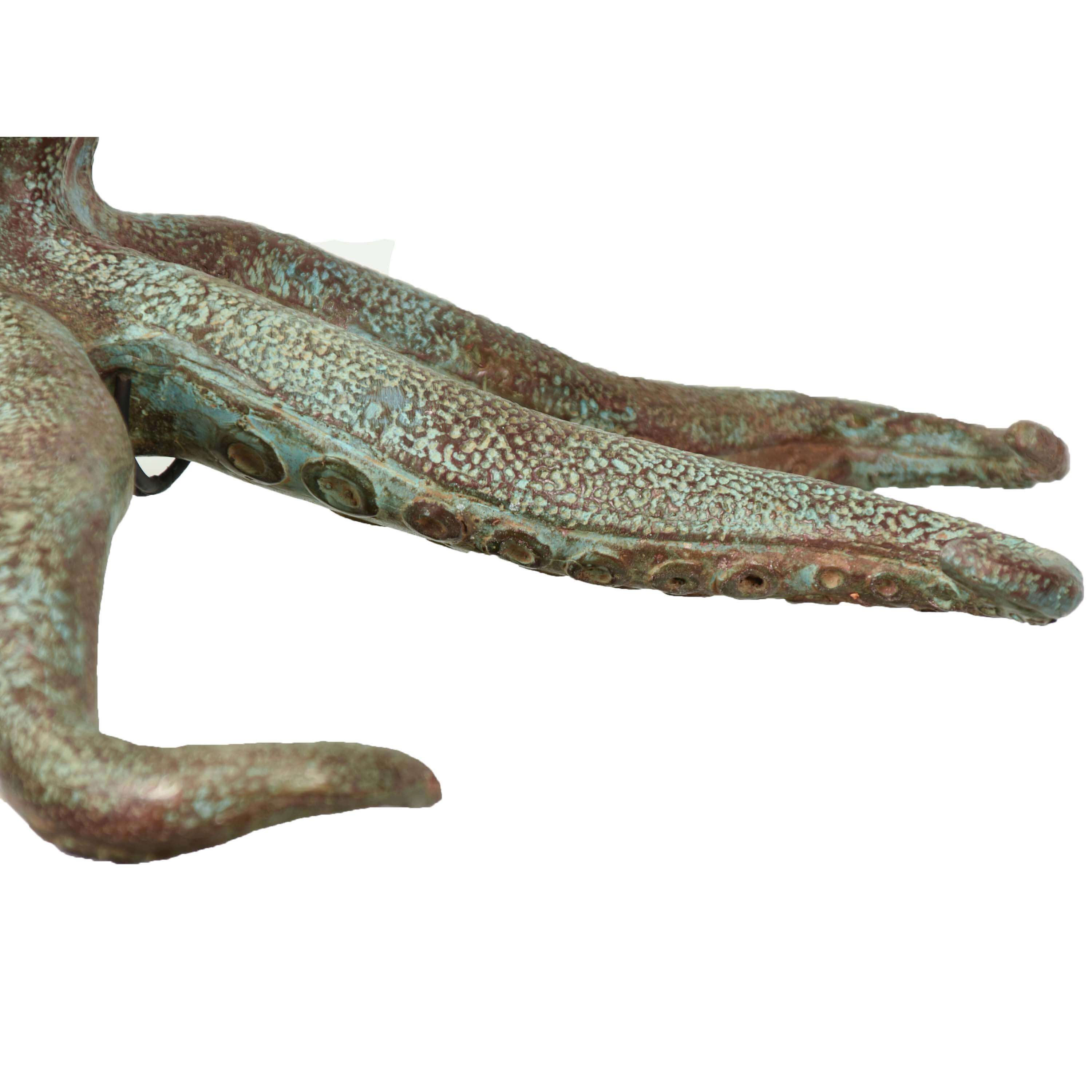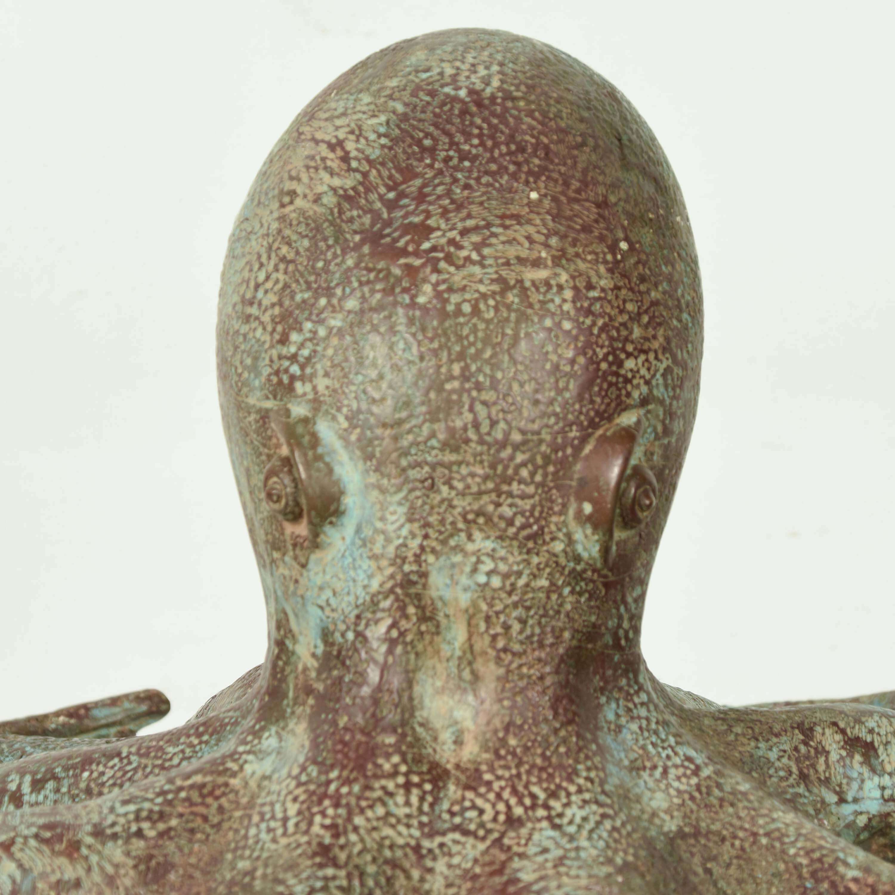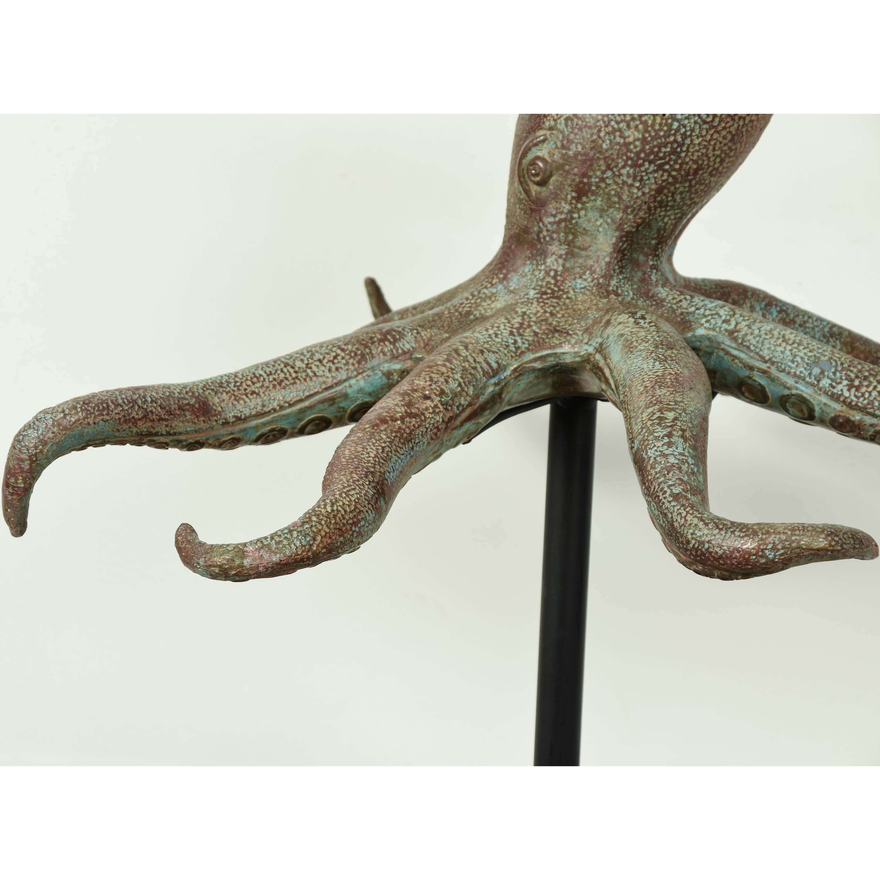 A contemporary bronze octopus made by our artisans in Indonesia. This beautifully crafted eight legged creature makes a wonderful statement piece on it's stand.