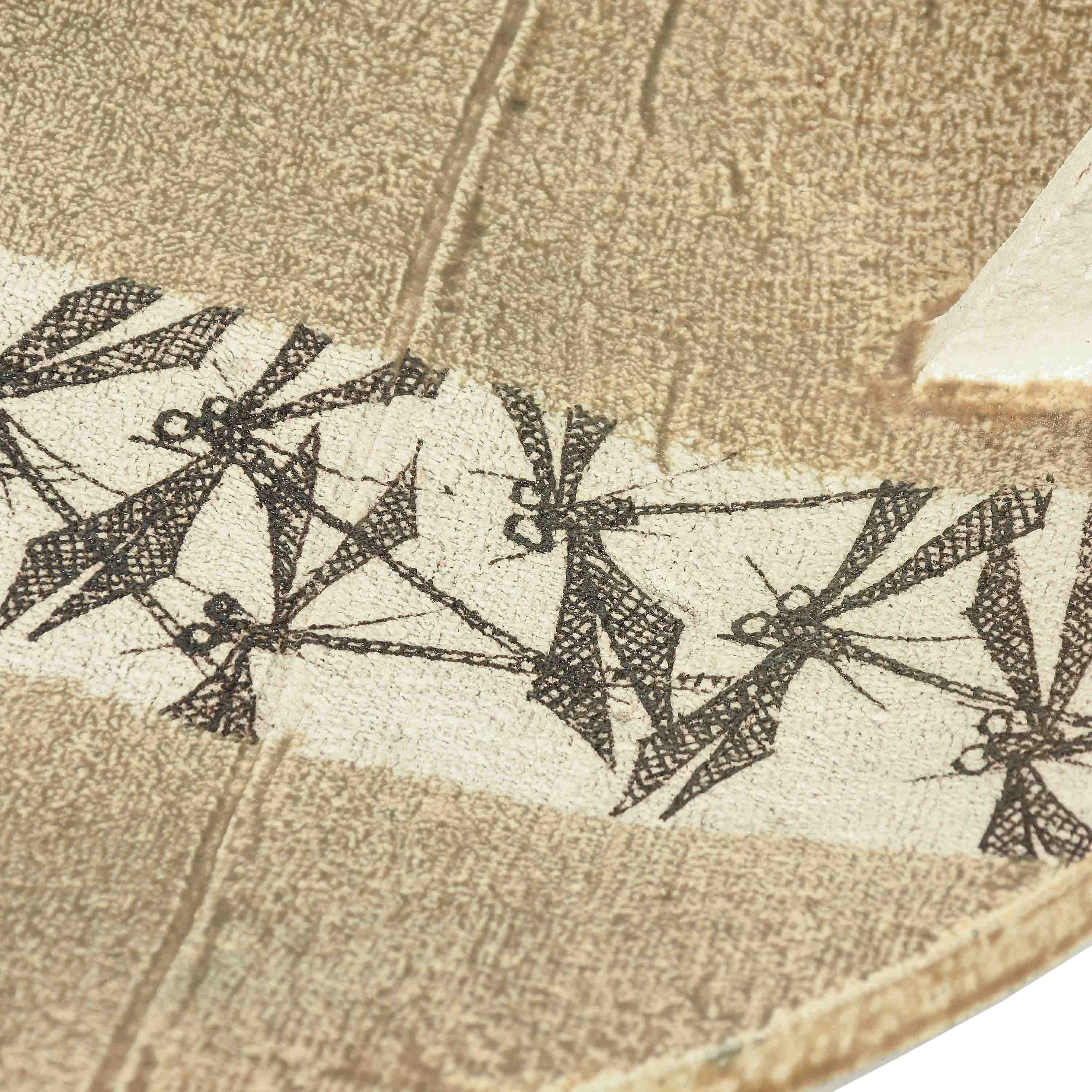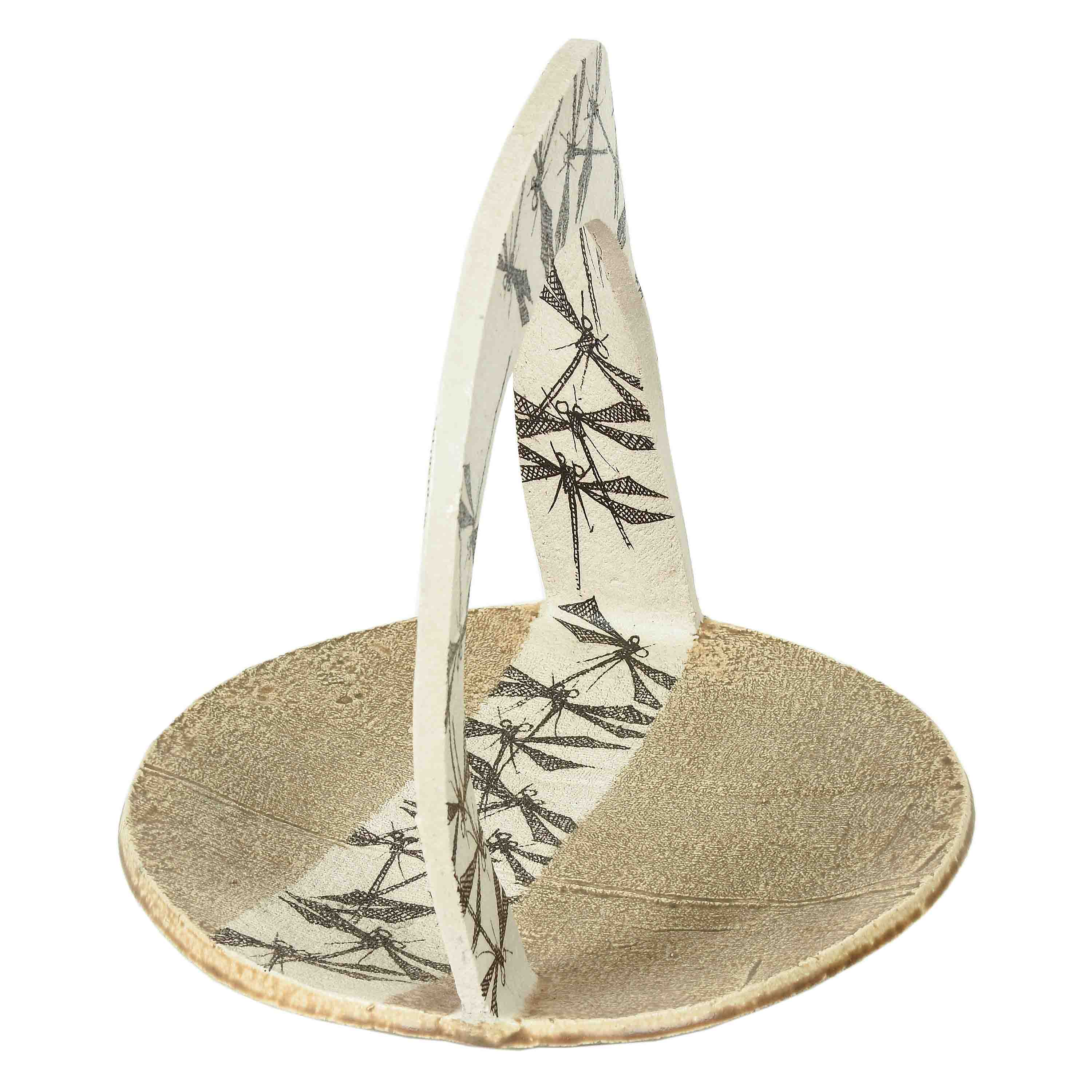 Spectacular Japanese pottery bowl with handle by Kinji Ogawa - born in 1926 in Kyoto (showa 49) - Dragonfly motif.