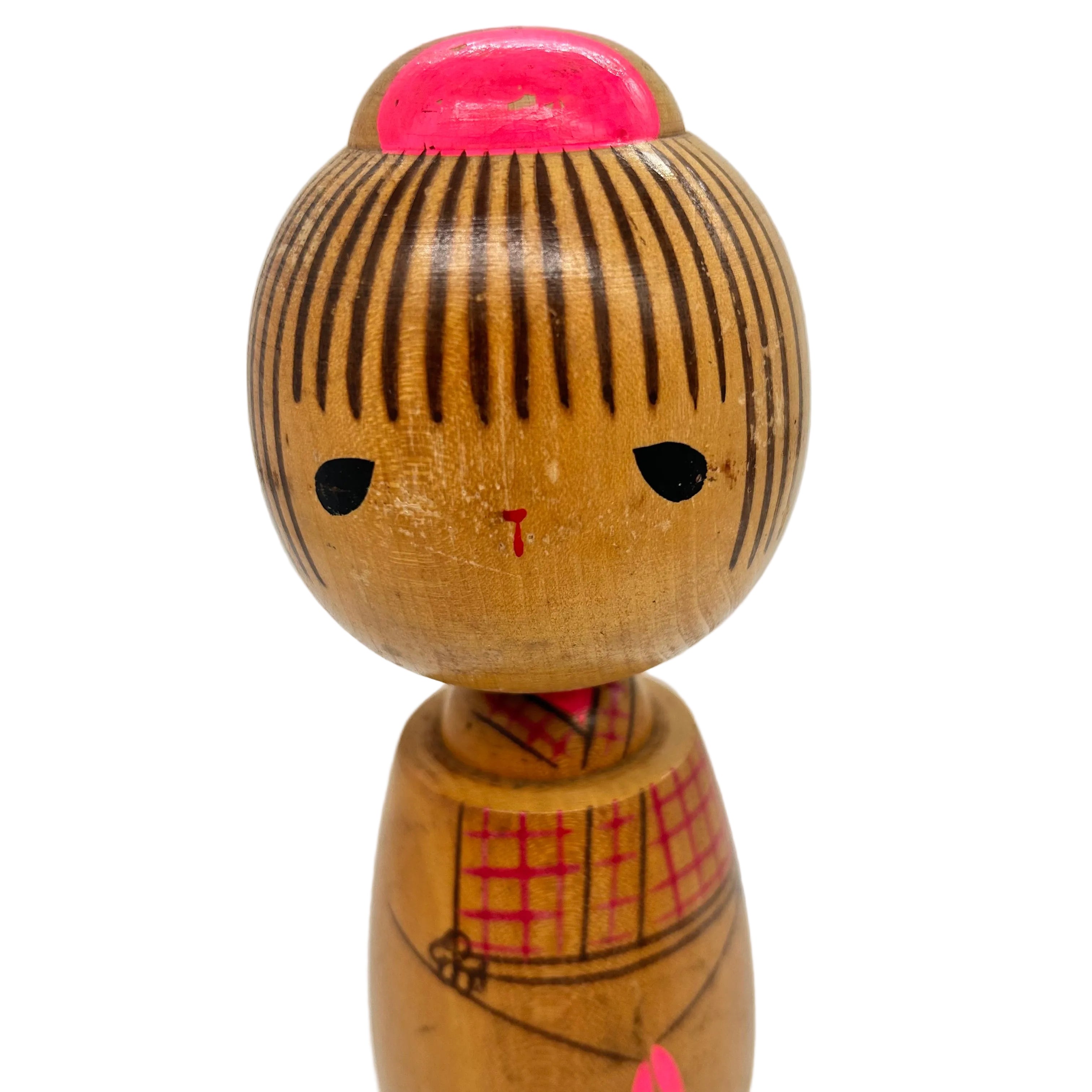The kokeshi measures approximately 7 cm in diameter and 28 cm in height.