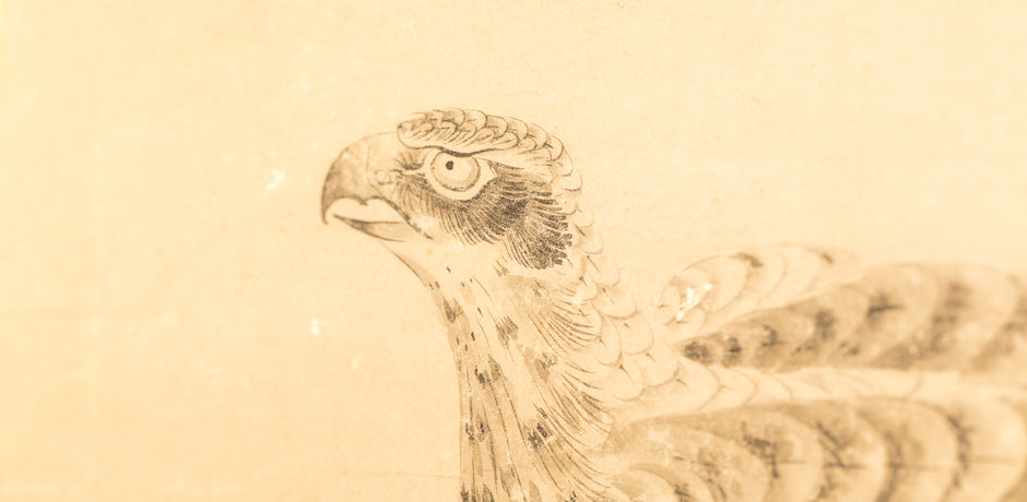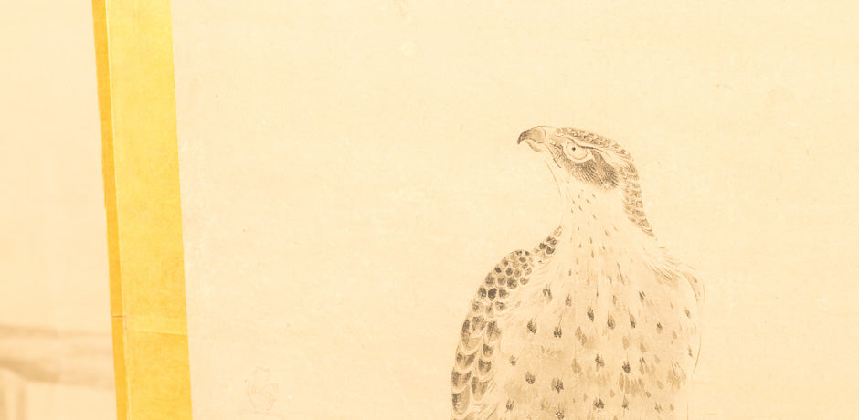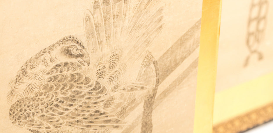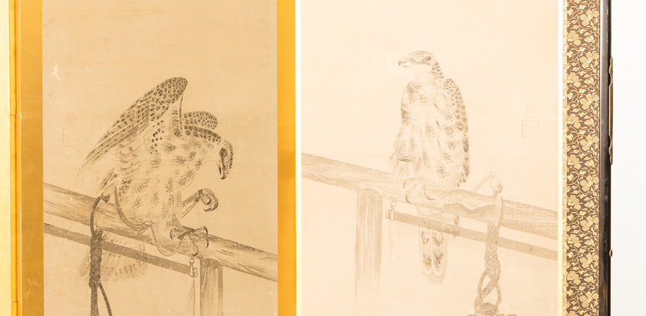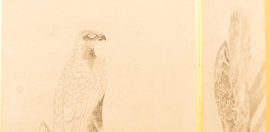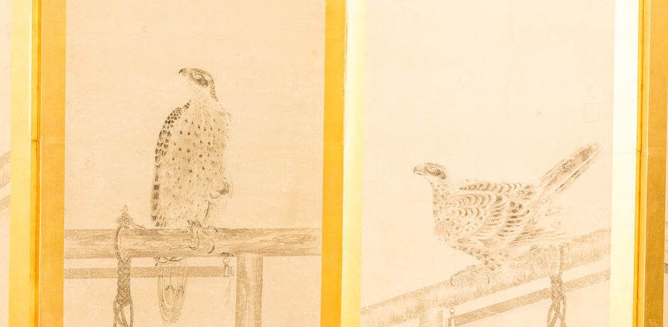 Antique Japanese screen with birds of prey