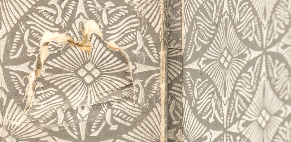 Please note: A/F (as found) – there is some damage to the reverse side of the panels, as shown in photographs. The front artwork remains visually compelling and largely intact.