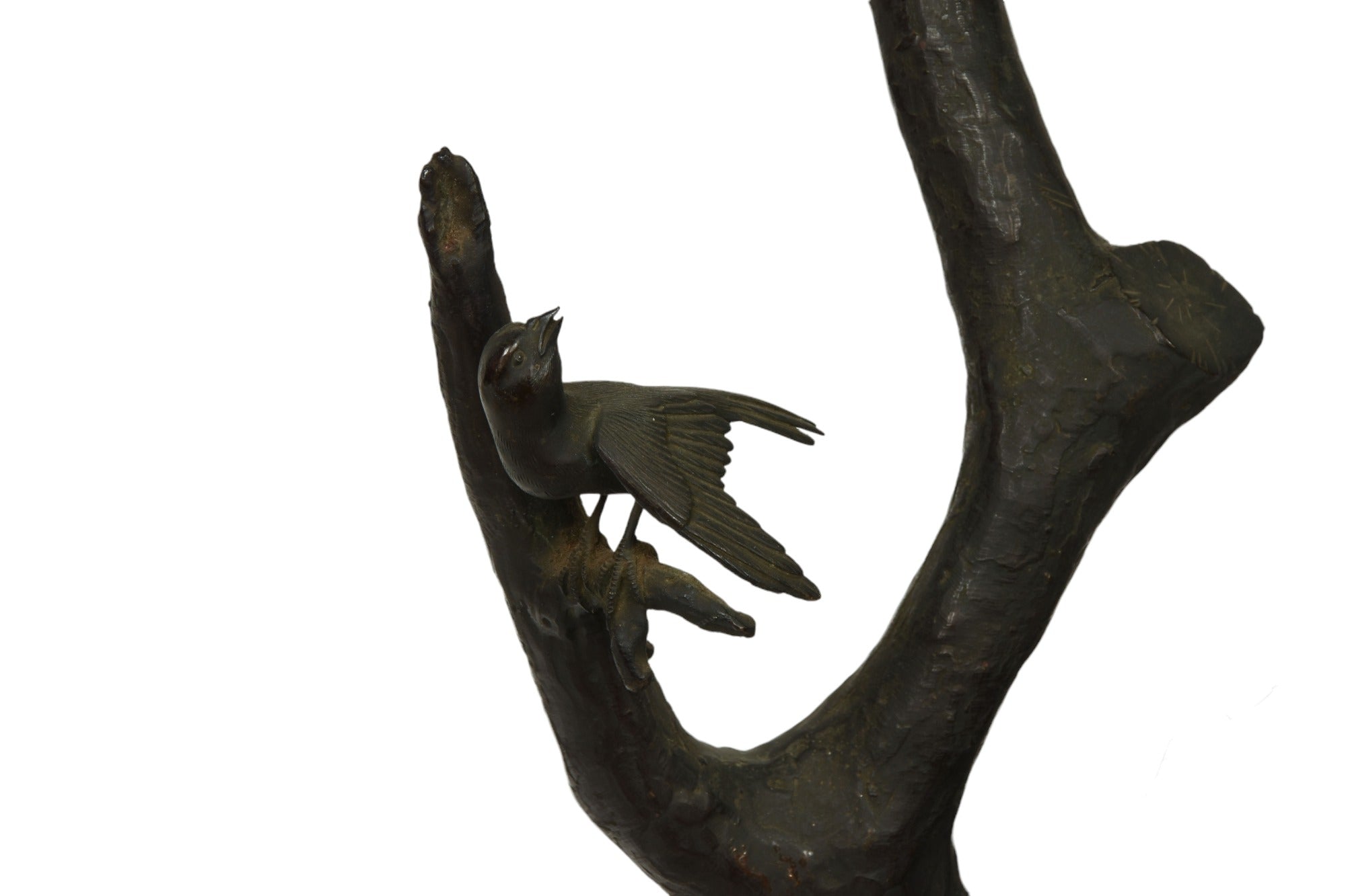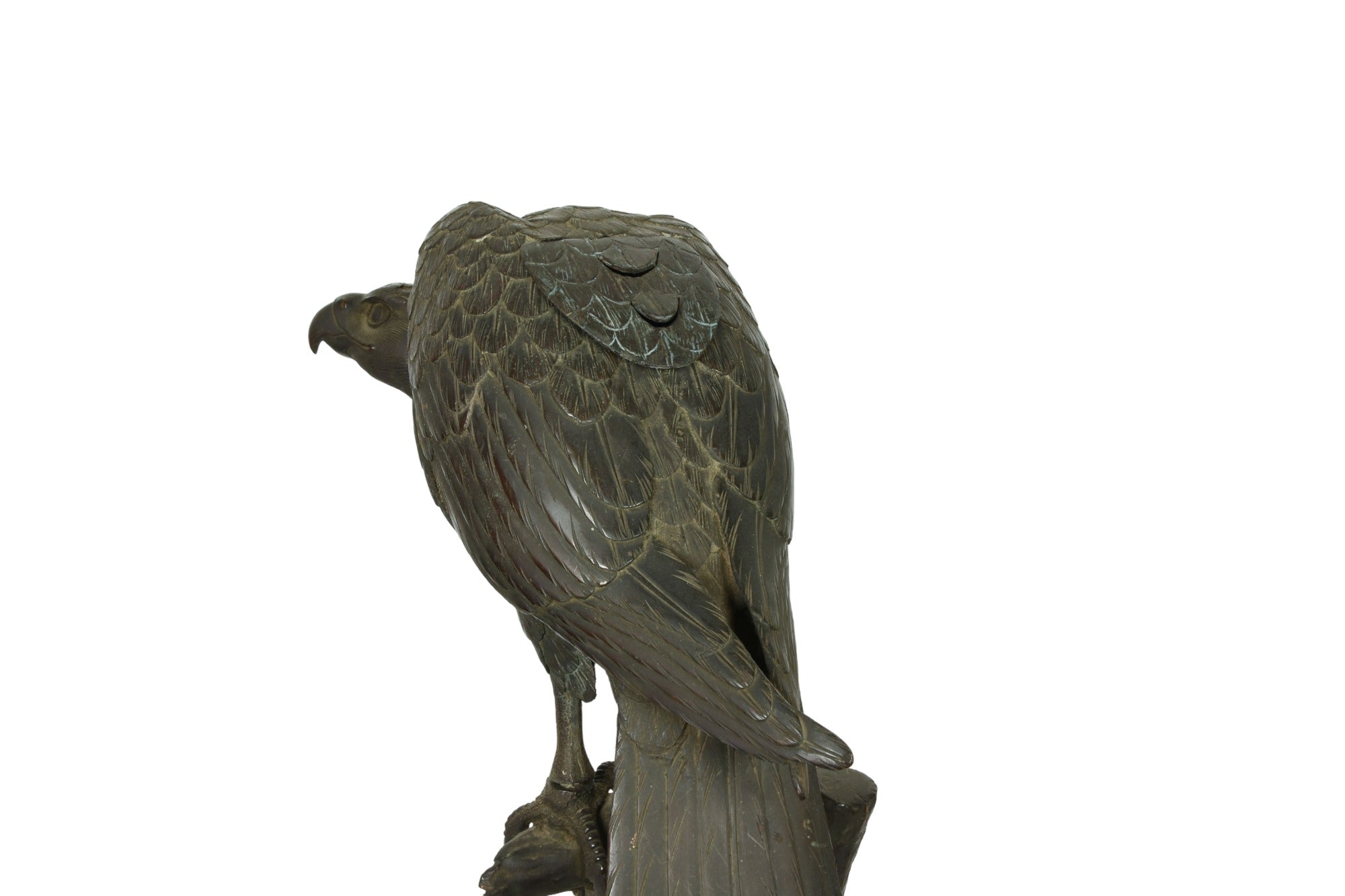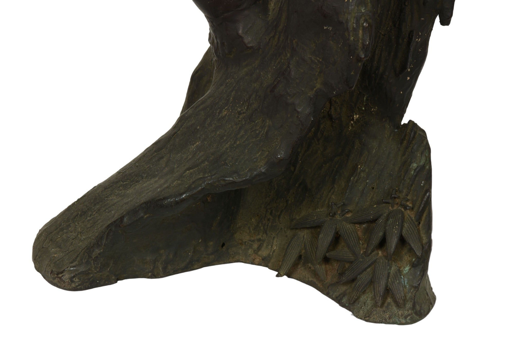 Japanese bronze incense burner (Koro) in the sculptural form of a Hawk resting on a tree branch. Meiji period circa 19th century.