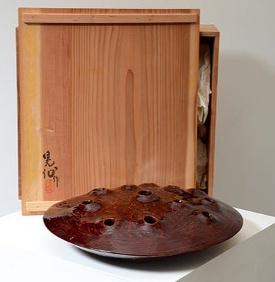 Unusual Japanese lacquer Ikebana vase in the shape of a lotus, with original signed box.