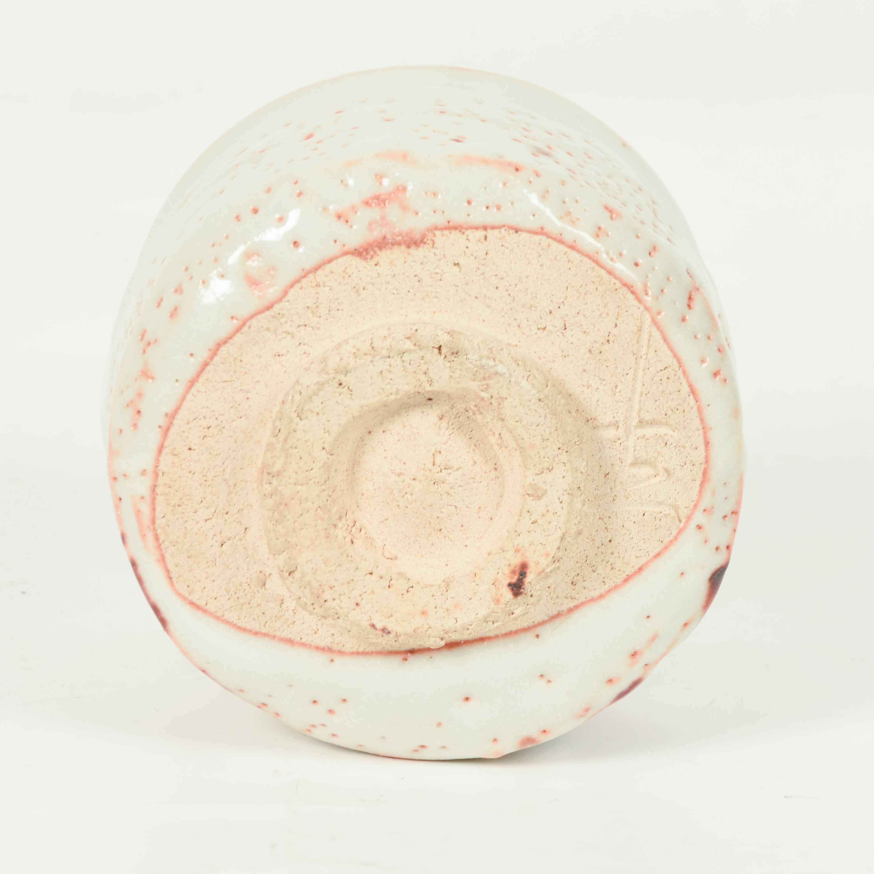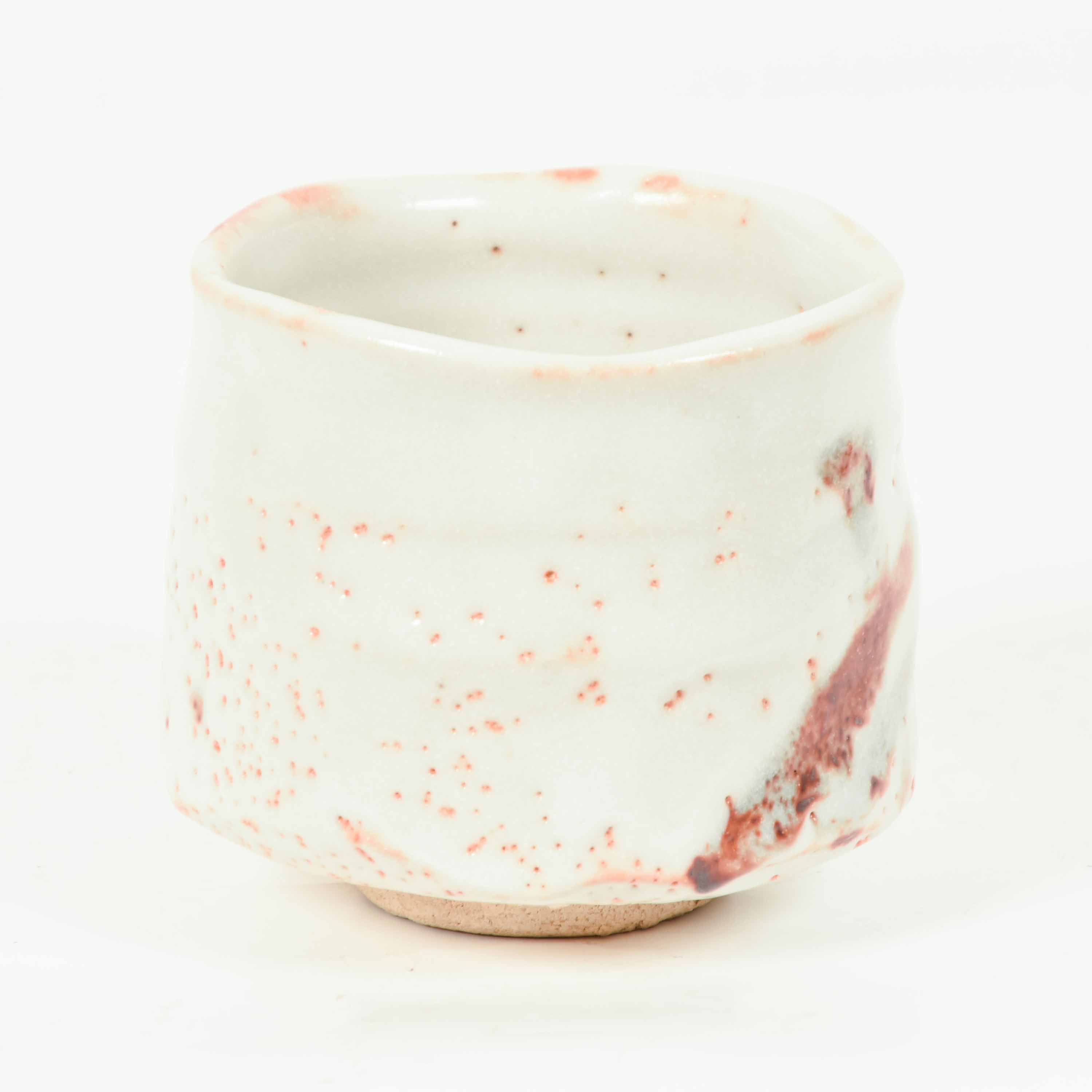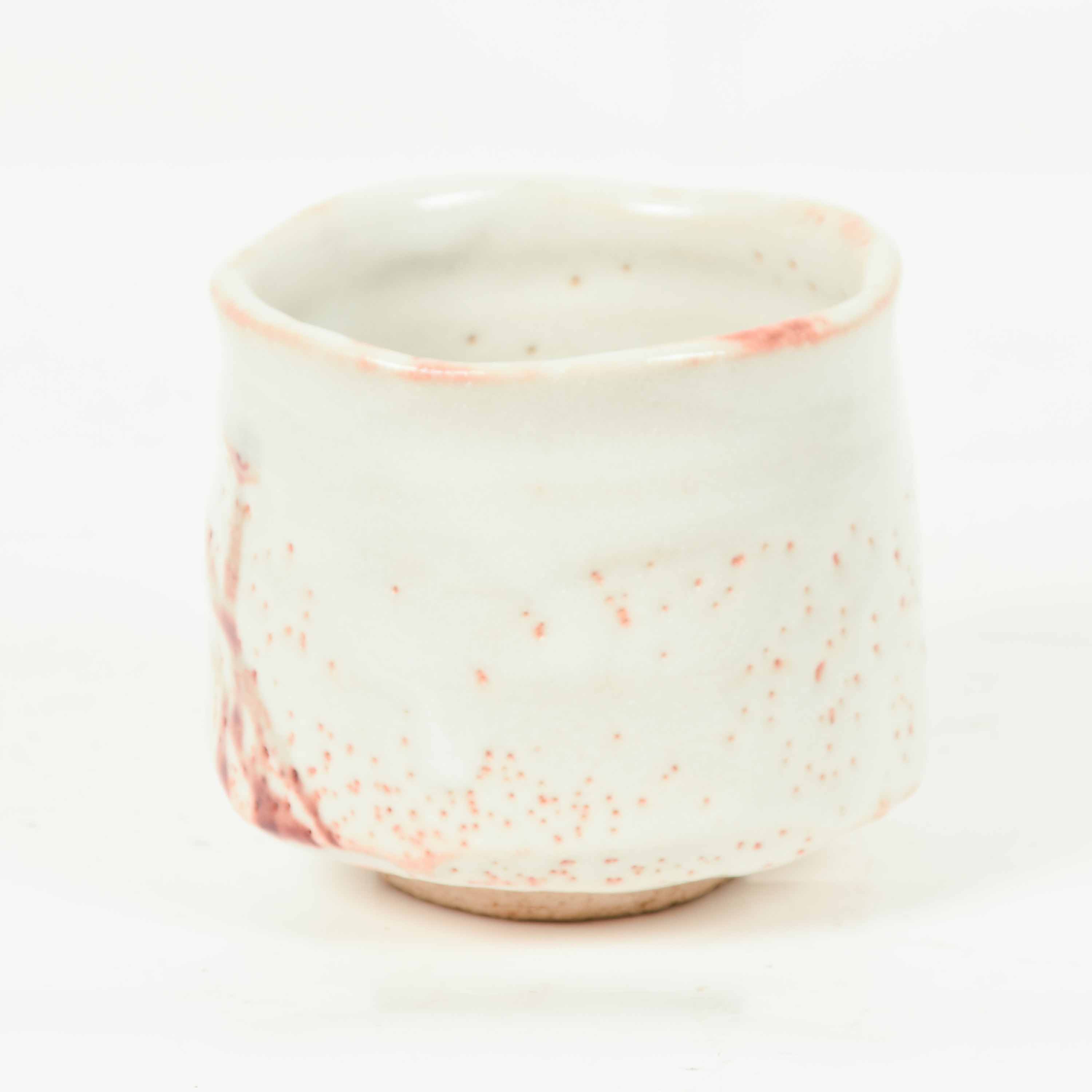 A Japanese pottery Shino tea bowl with an organic shape and feel.