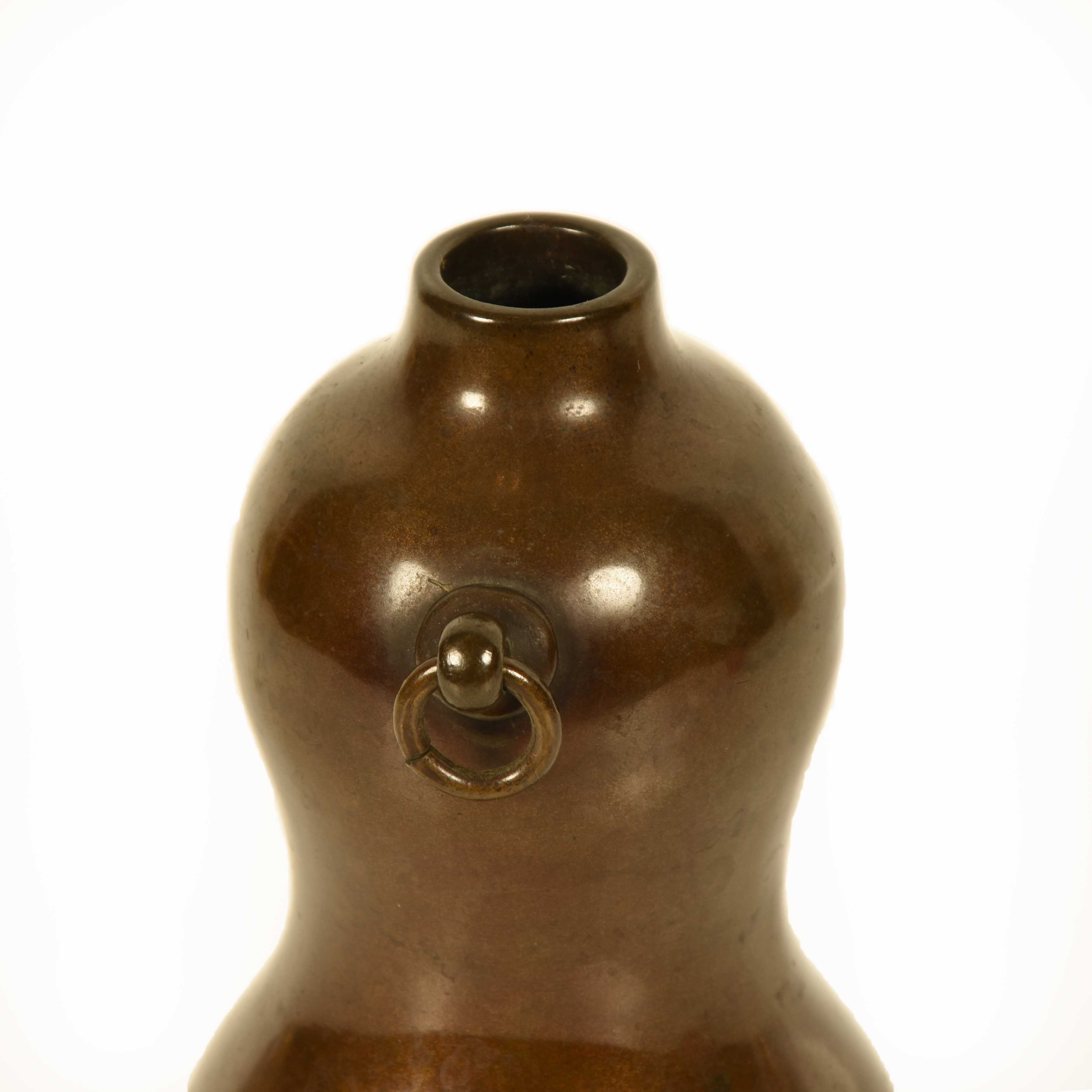 Japanese bronze wall vase in the shape of a gourd.