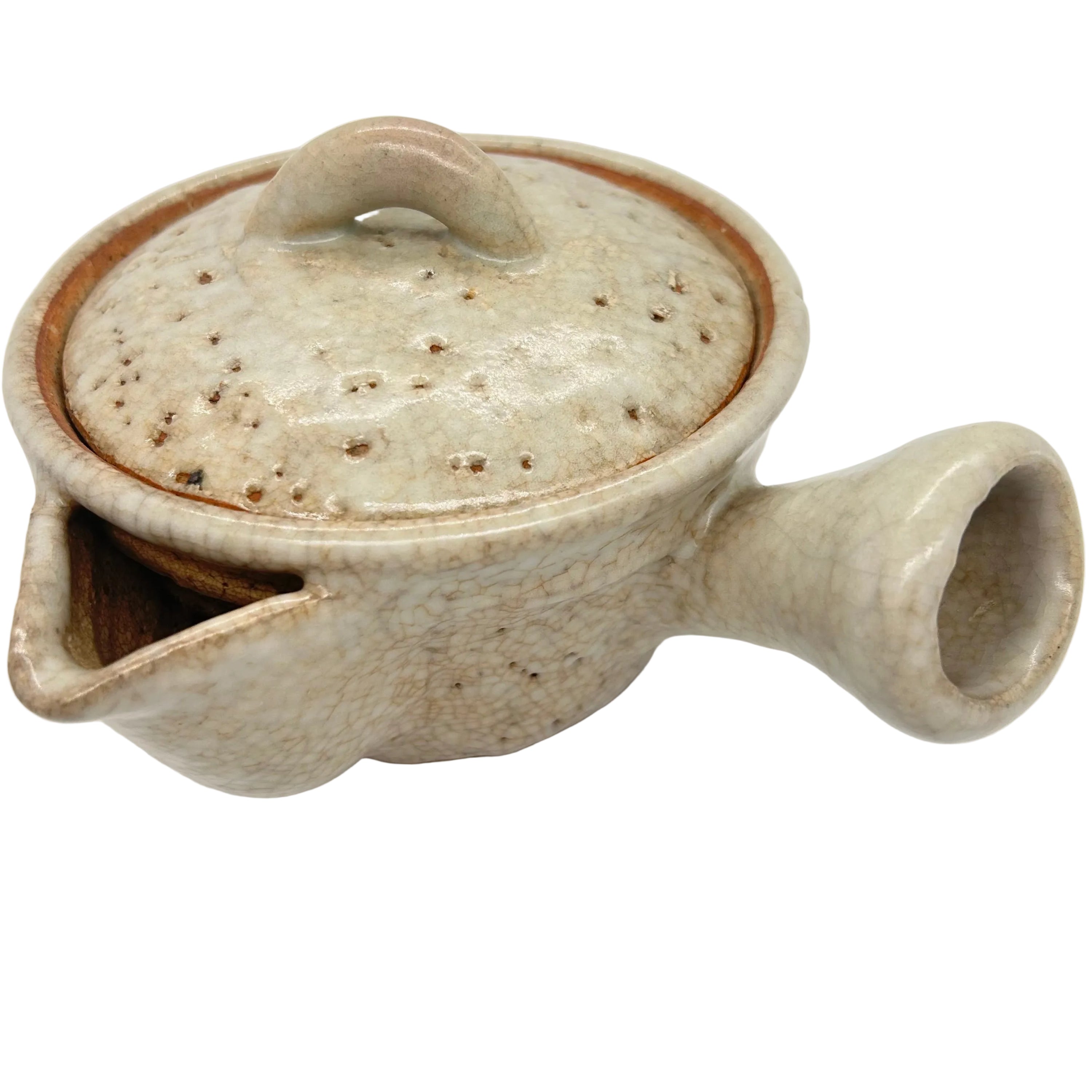 A Japanese Shino pottery tea pot with the distinctive style of Shino ware.
