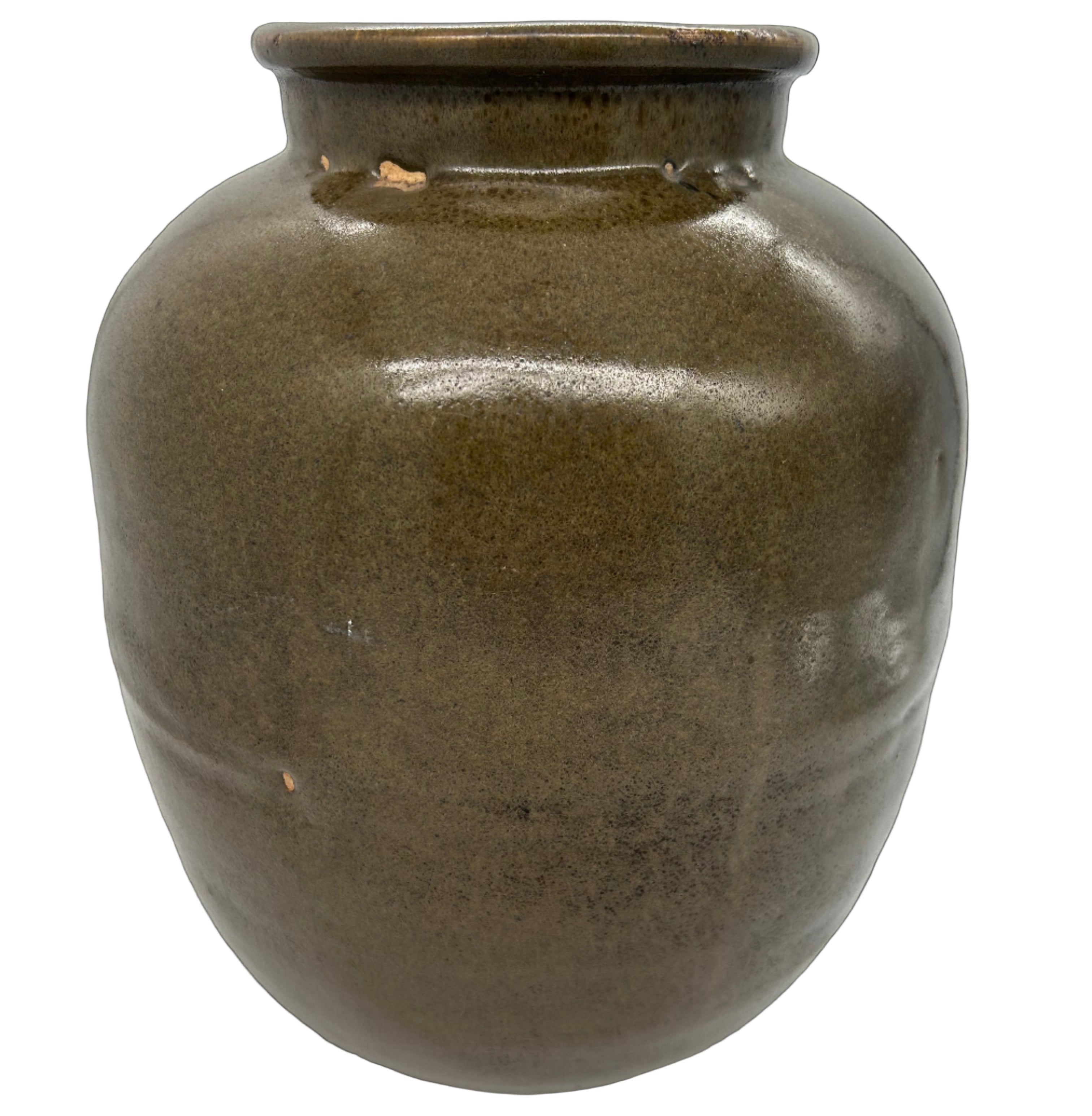 Vintage Japanese Shigaraki olive glazed tea storage jar. C1920's