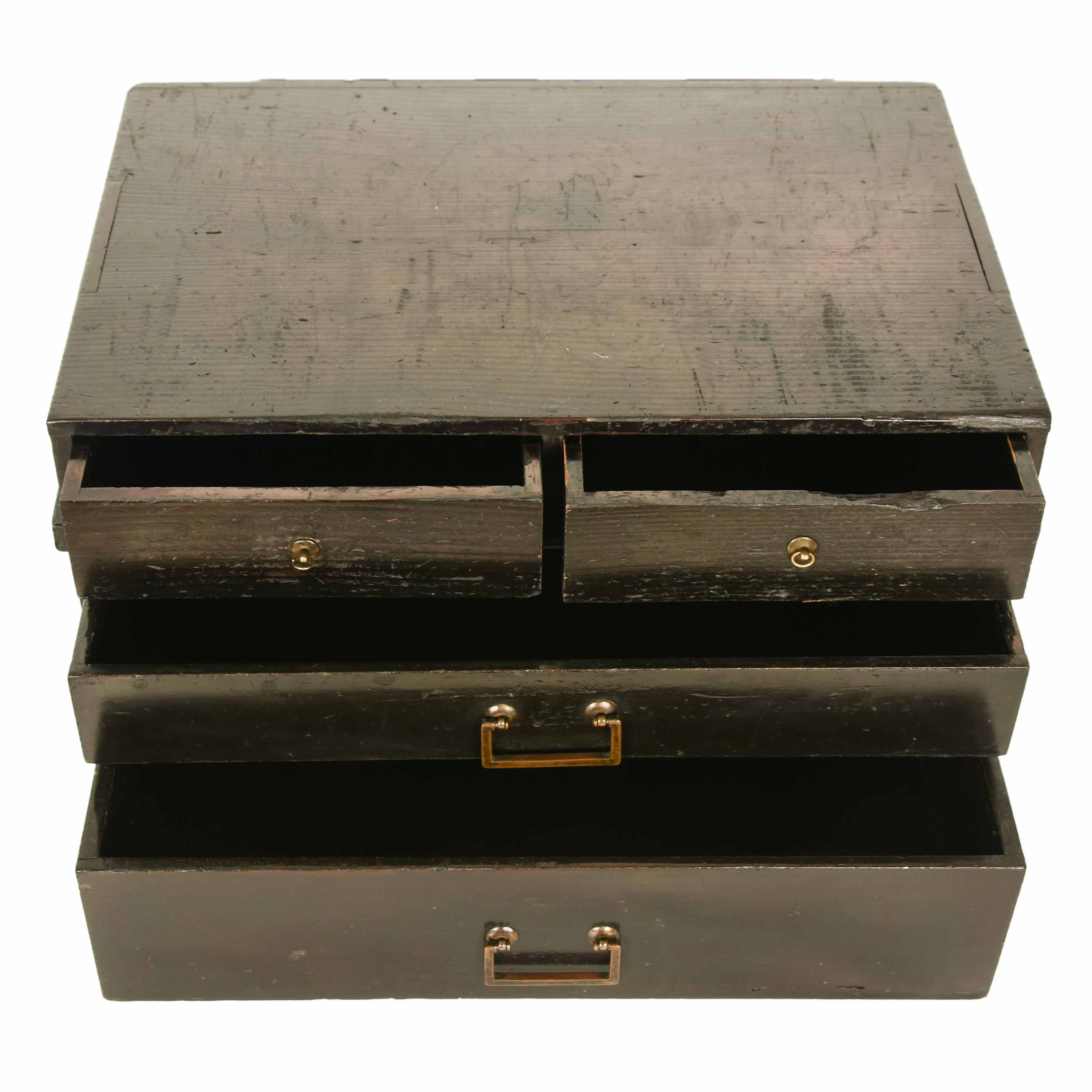 A finely crafted Japanese lacquered writing box from the Edo period (c.1840), made from cedar wood. Designed for storing writing implements, documents, or personal items, this box reflects the elegance and practicality of Edo-period craftsmanship.