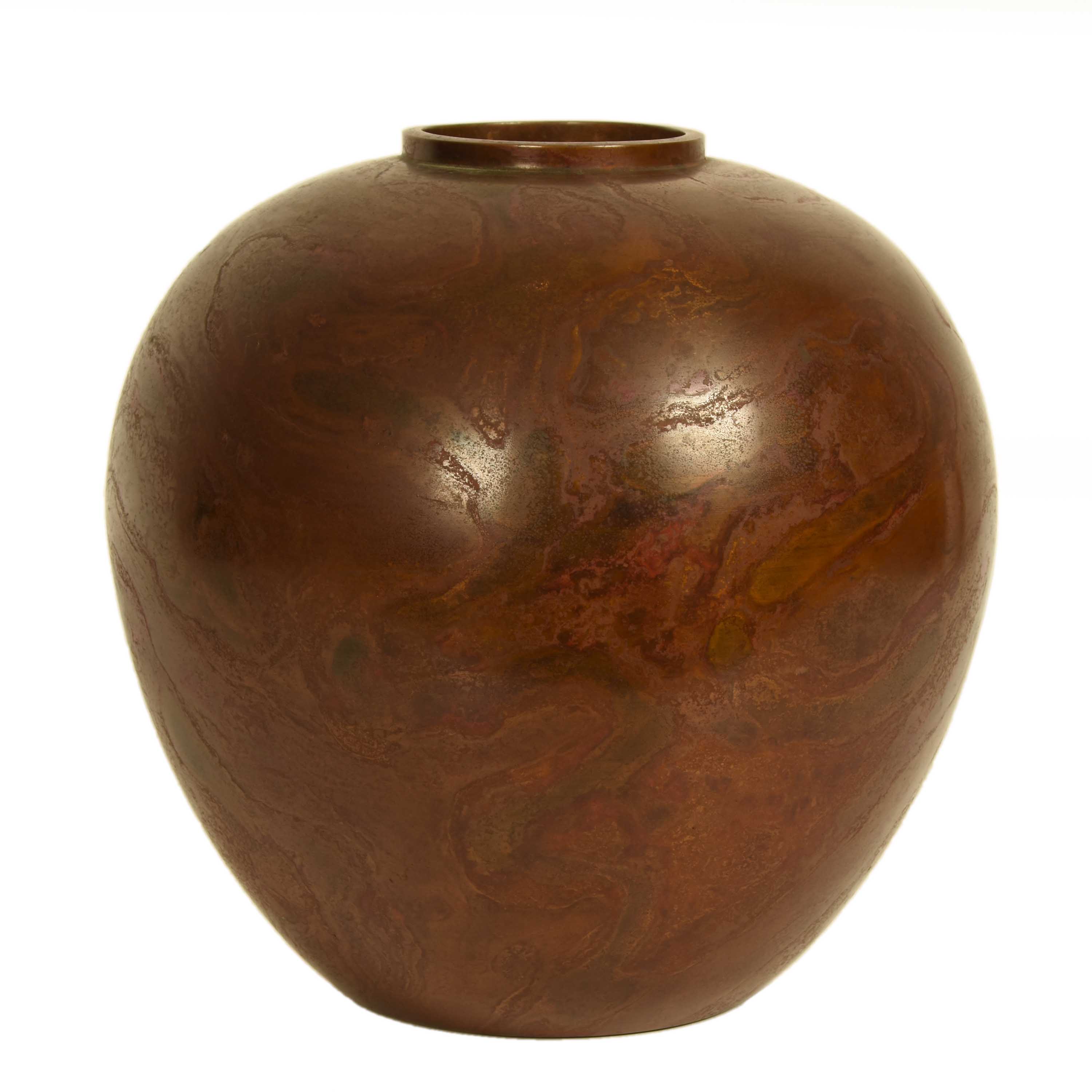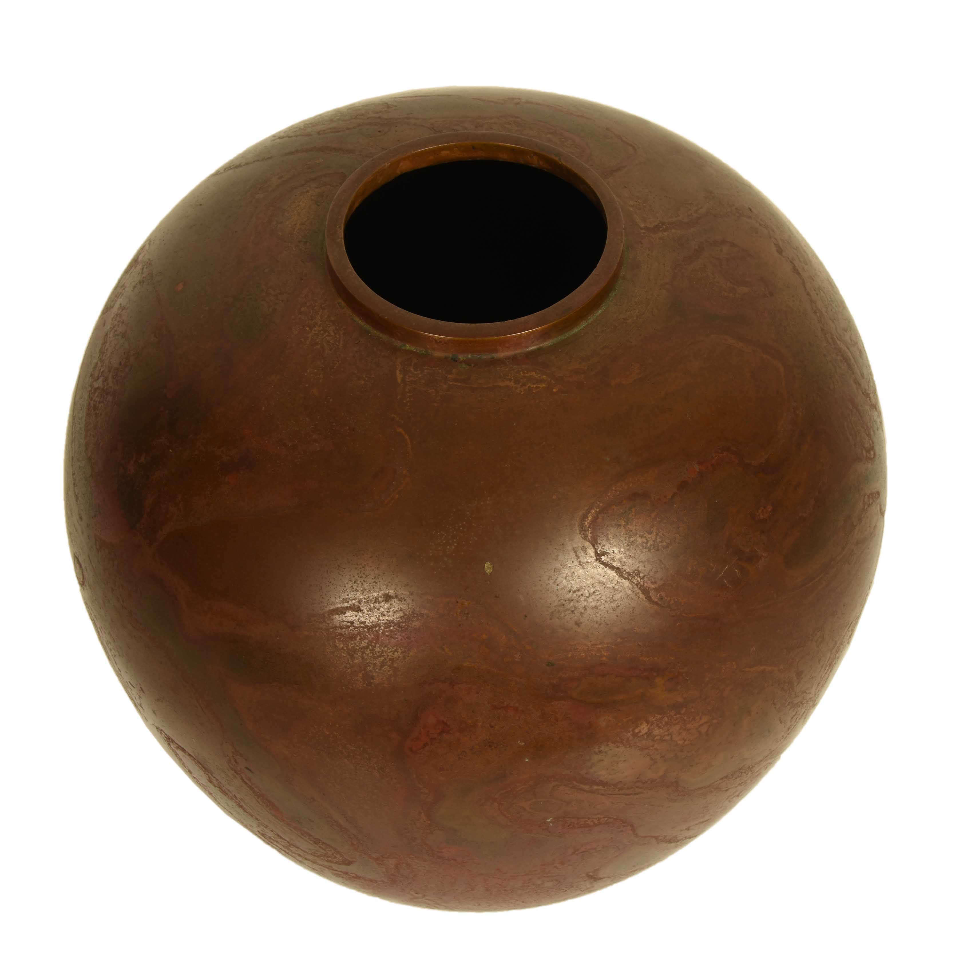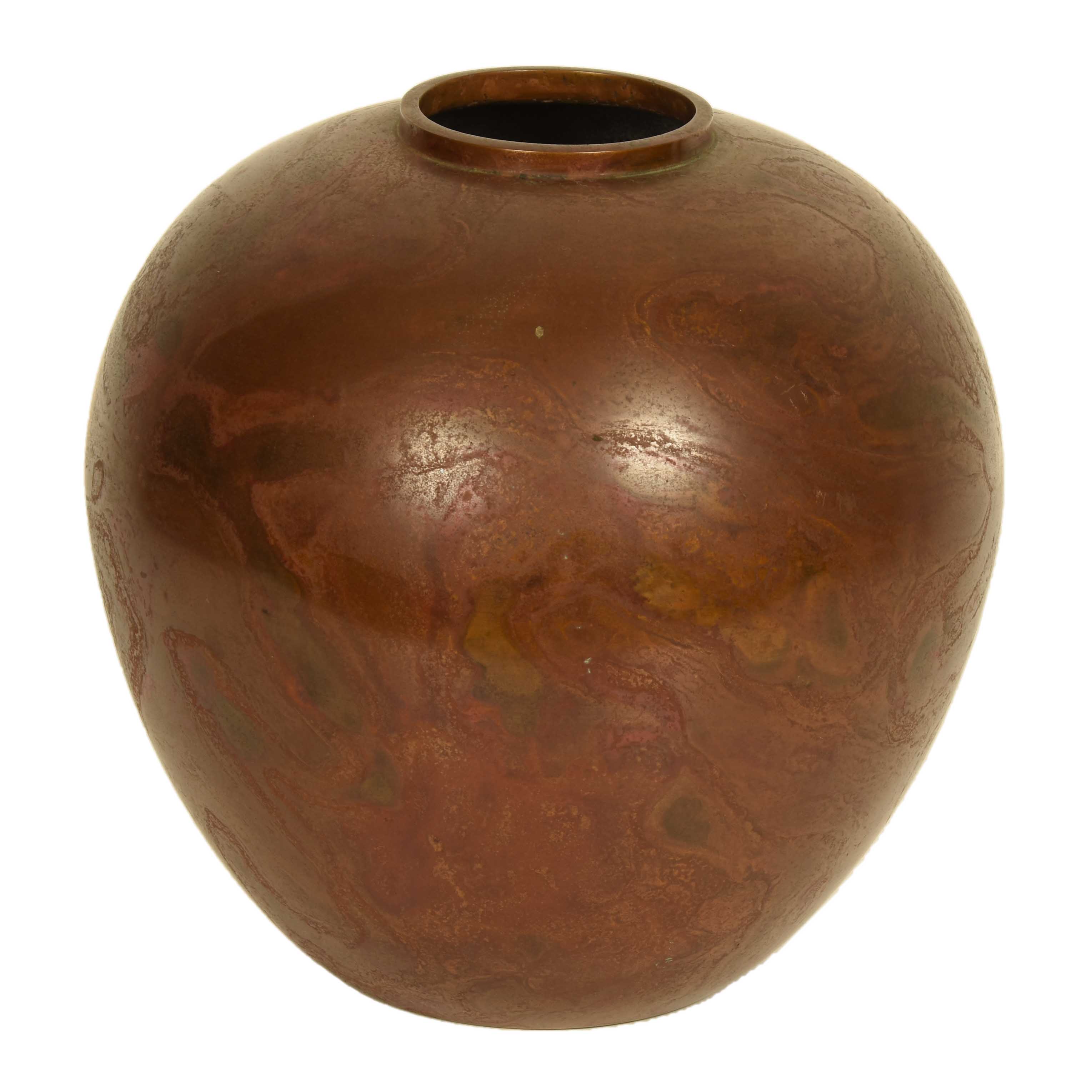 A Japanese red bronze globular shaped vase with a fine patina from Yamagata. Japanese red bronze has a a high copper content giving it a distinctive colour and pattern.