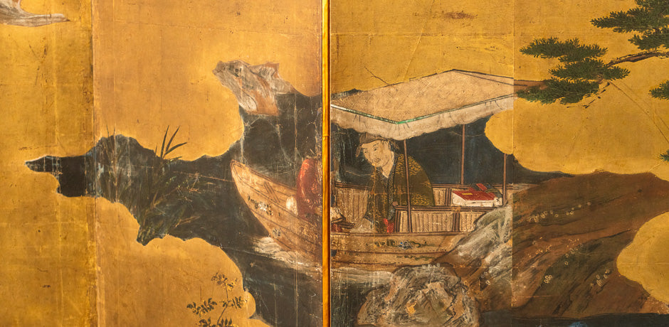 A remarkable piece, this 17th-century screen would be an exceptional addition to any collection of Japanese or Chinese landscape art, literati painting, or antique screens.