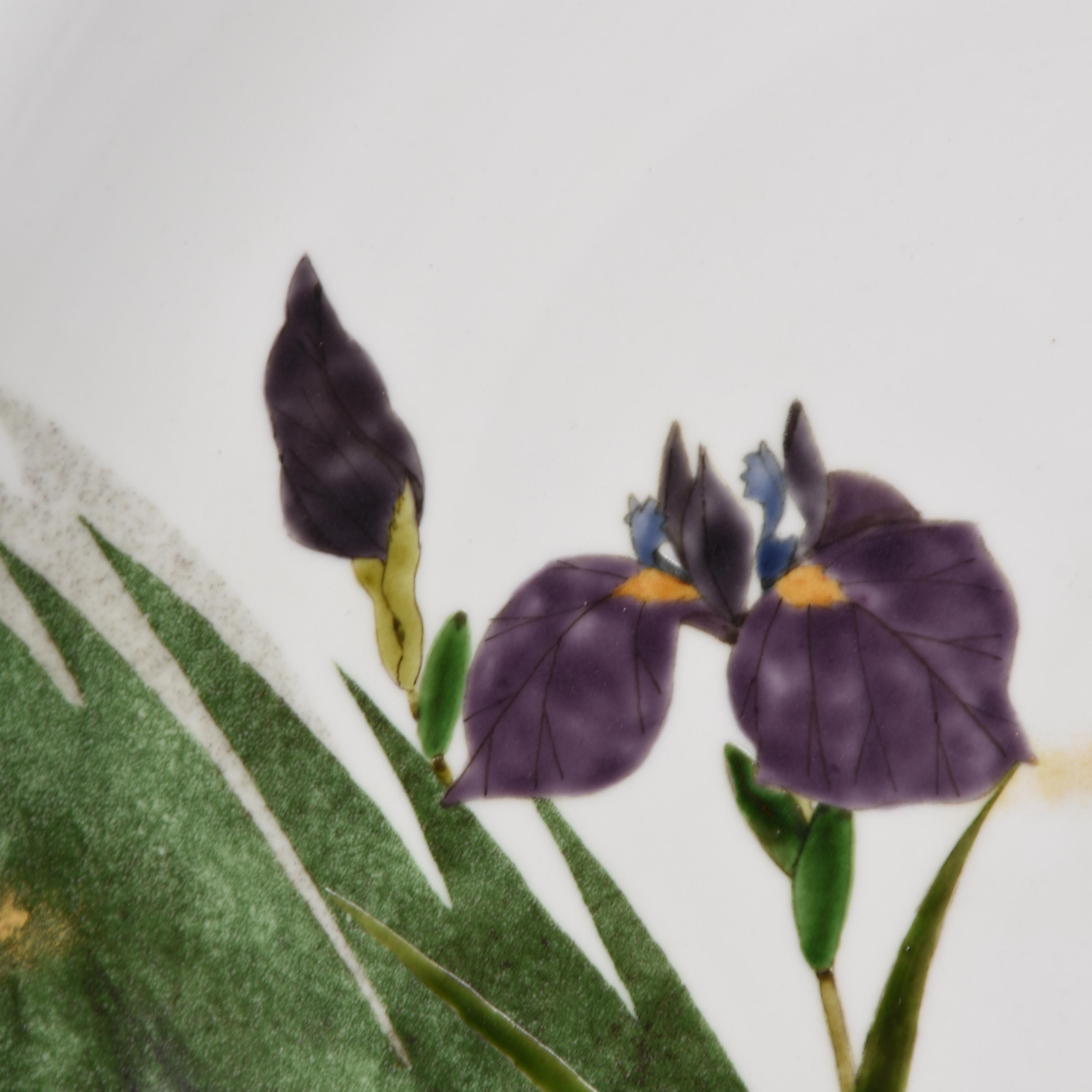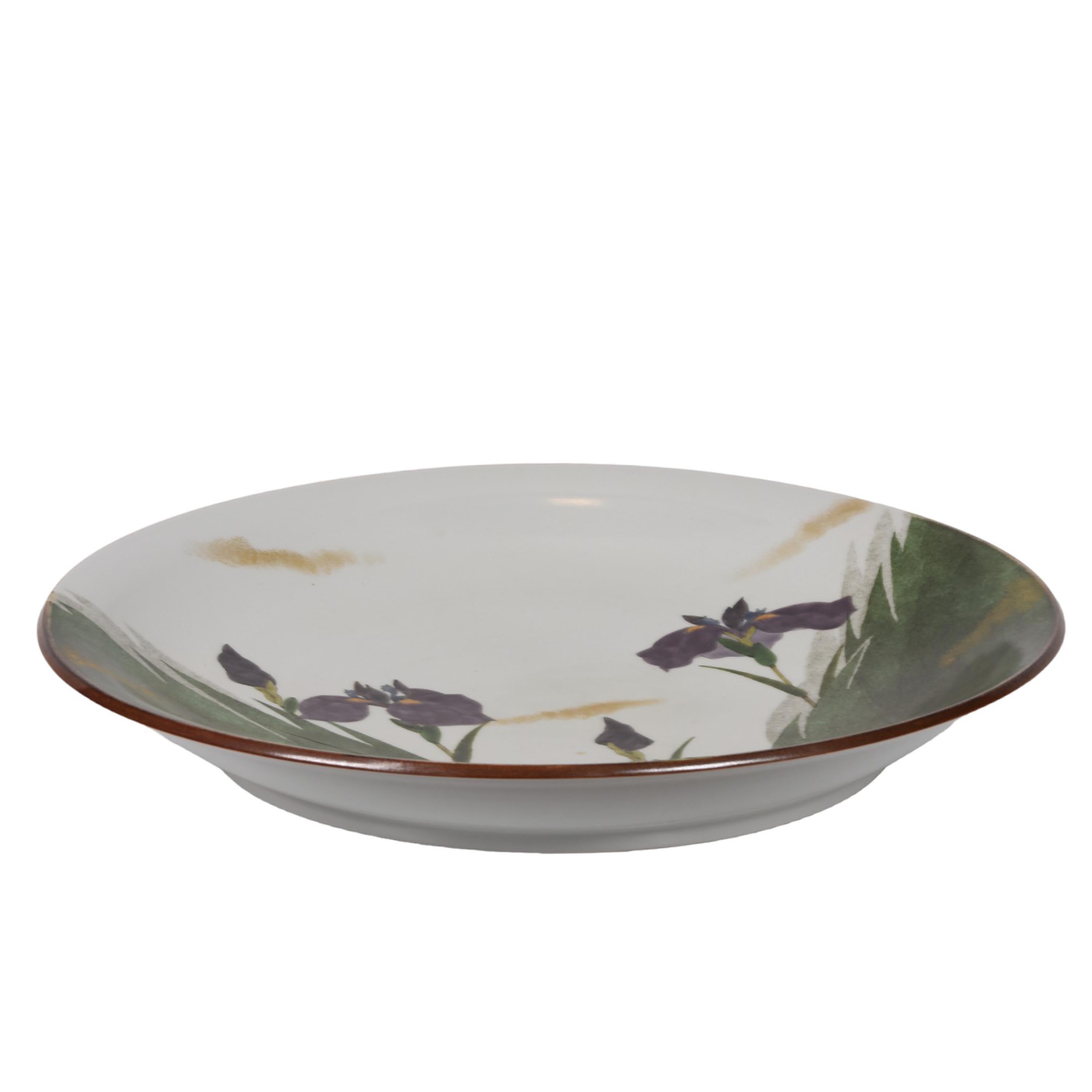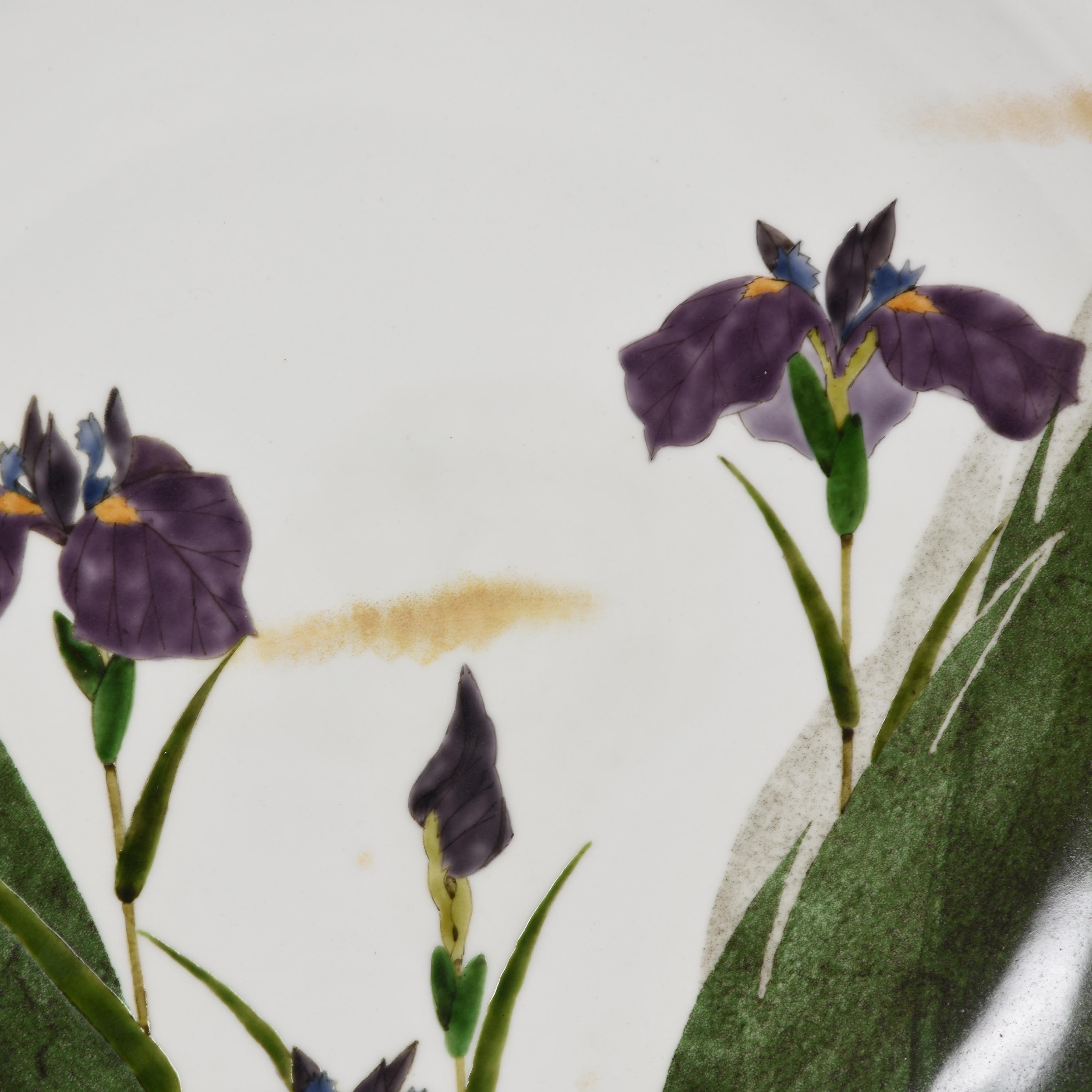 Japanese Large plate with Iris decoration by Artist Mikio Osako born in 1940. His works are in The Metropolitan Museum among others.