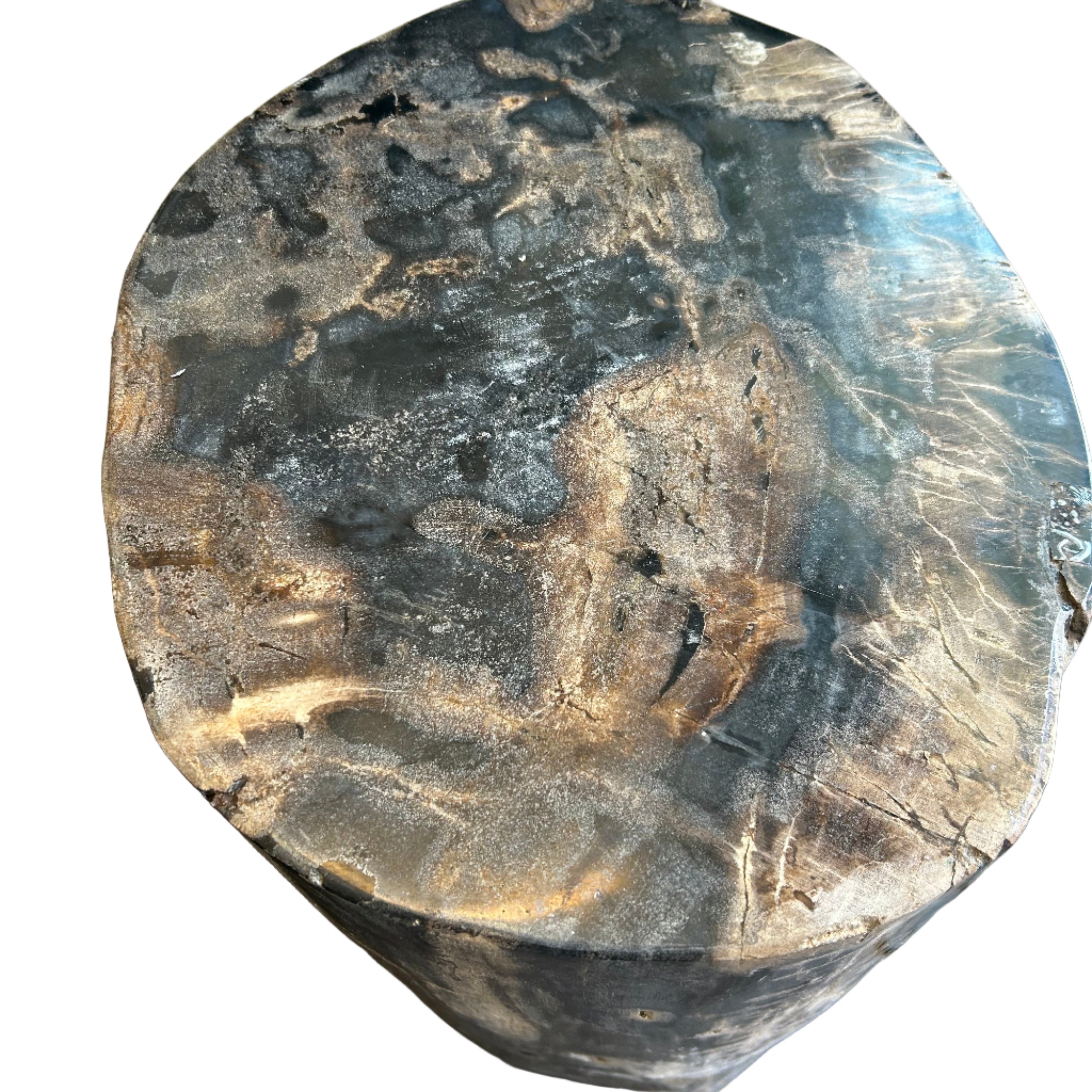 This petrified wood side table made from one piece of solid stone - over millions of years in the ground timber turns into stone. It is a unique piece that adds style and individuality to any contemporary home.