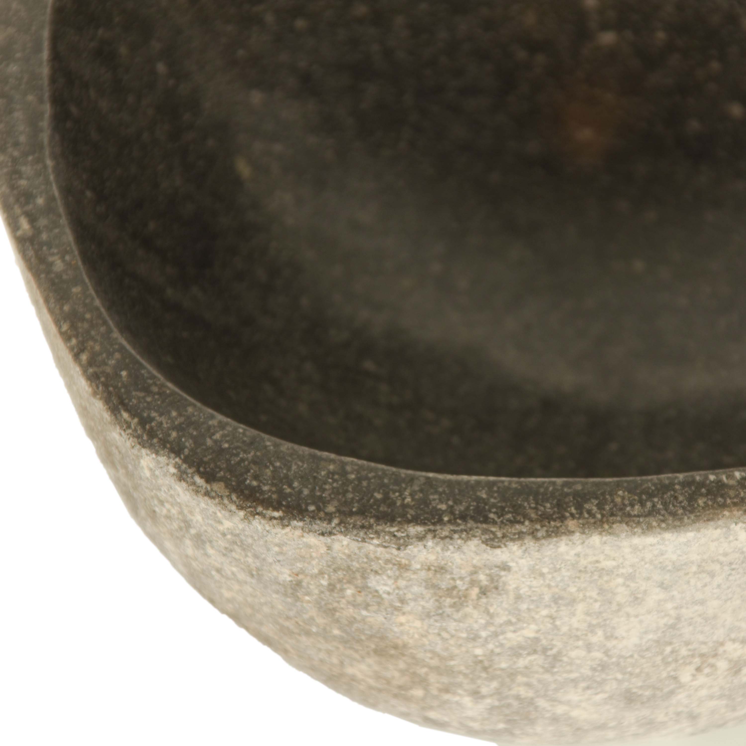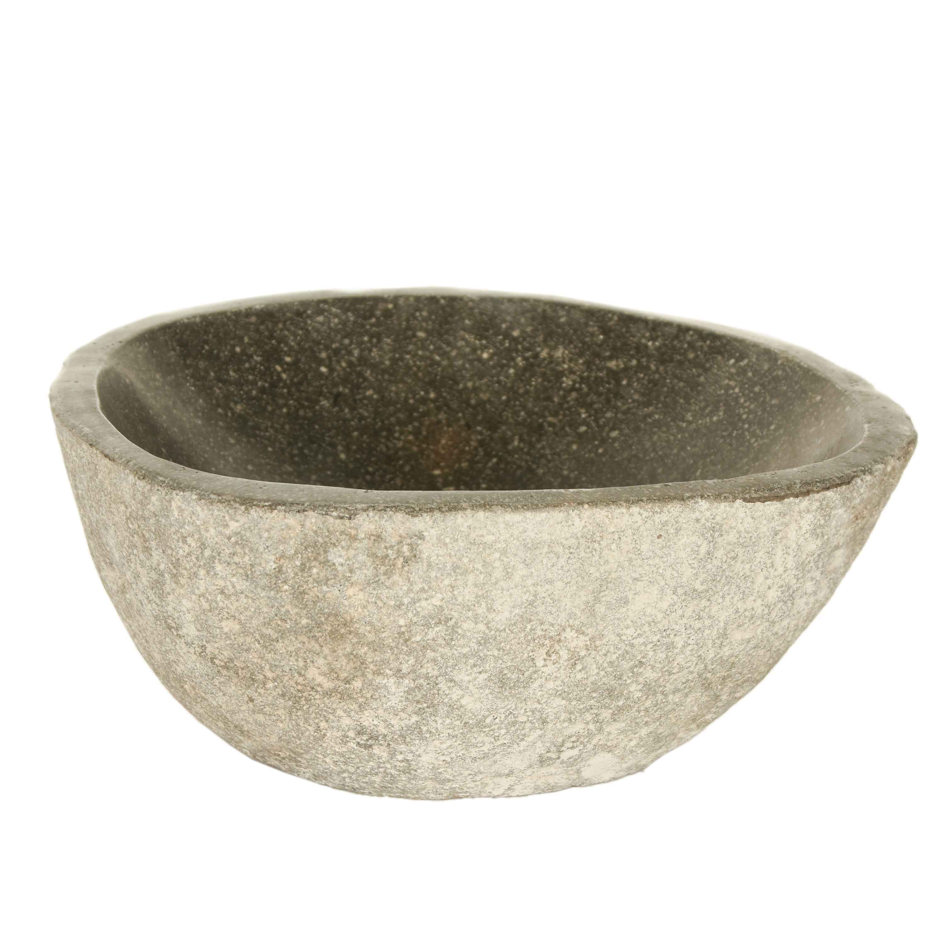 A small contemporary stone bowl made from basalt with a natural hewn exterior and a polished interior.