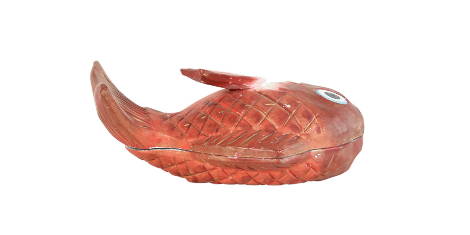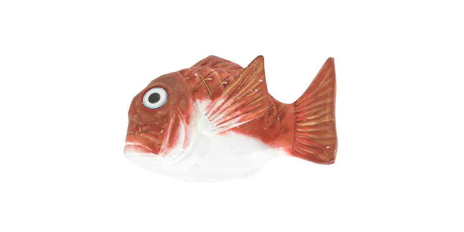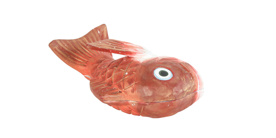 Vintage Japanese painted pottery Kogo incense container in the shape of a Tai Sea Bream, early 20th century. Sea bream is considered an auspicious food in Japan and often served in celebratory occasions.