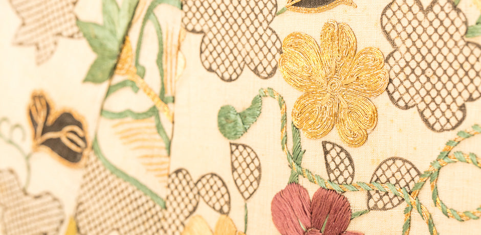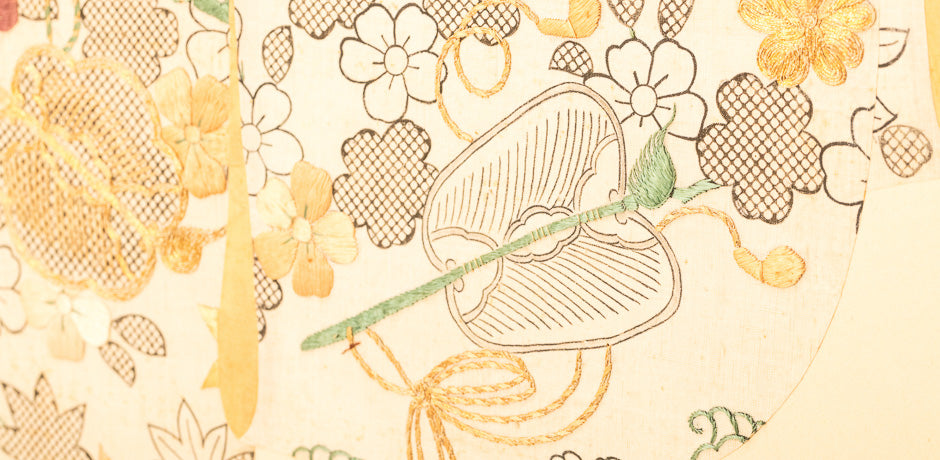 Japanese 2 panel screen, kimono design with embroidery.