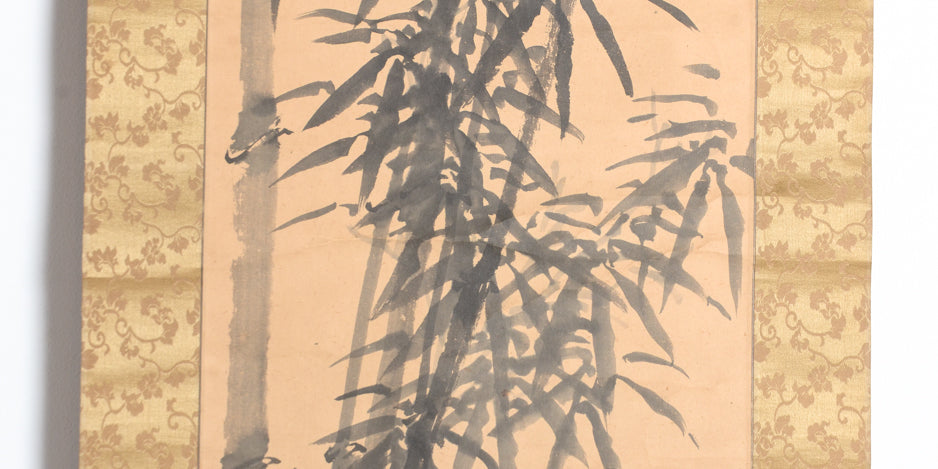 The use of ink gives the piece a sense of simplicity and elegance, which is a hallmark of many Japanese scroll paintings. Bamboo is also frequently associated with purity, nobility, and the transience of life, making it a fitting subject for this type of artwork.
