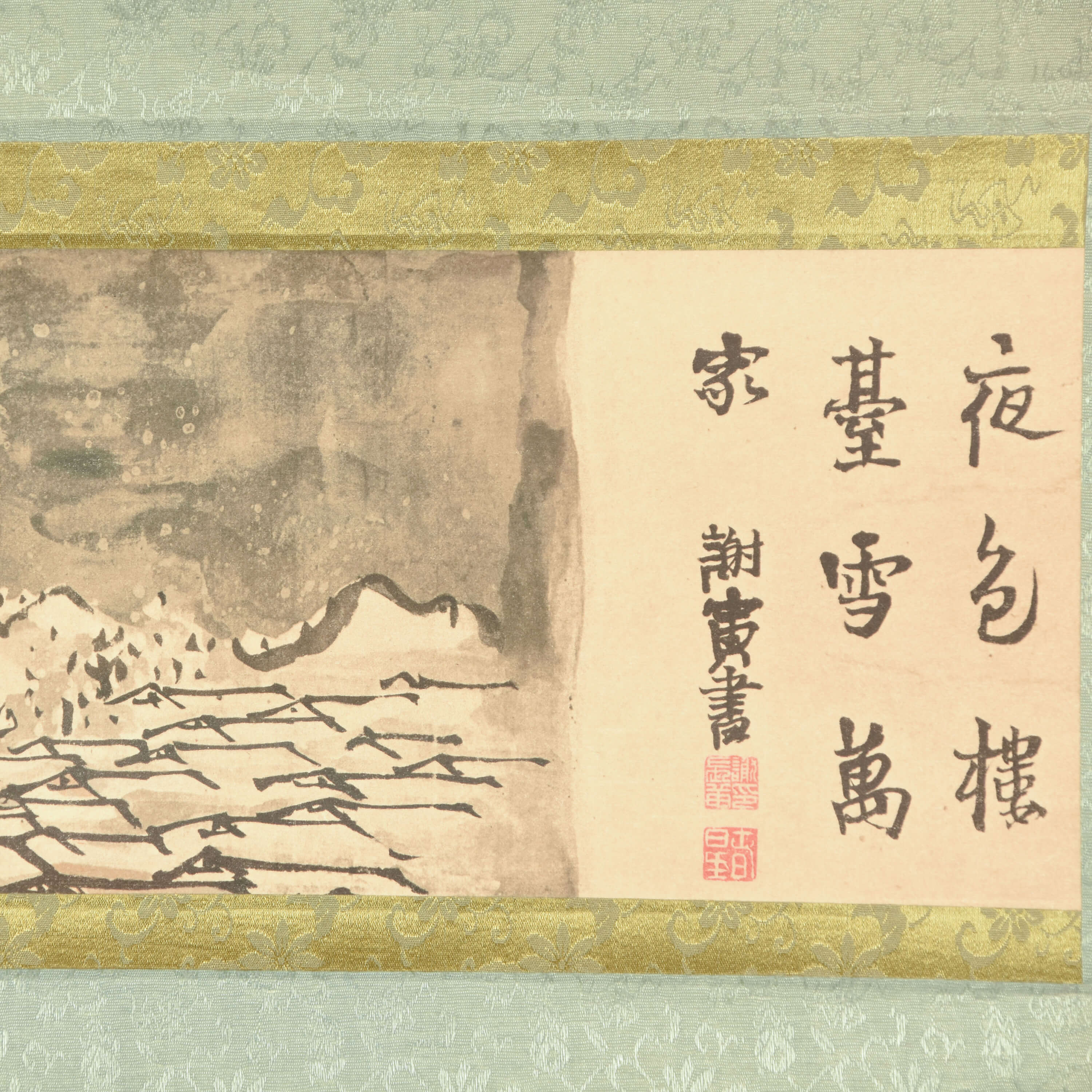 This piece would make a lovely addition to any collection of 19th-century Japanese scrolls, particularly those with a rural landscape theme. The soft tones and peaceful atmosphere would also be ideal for a space designed to evoke calm and reflection.