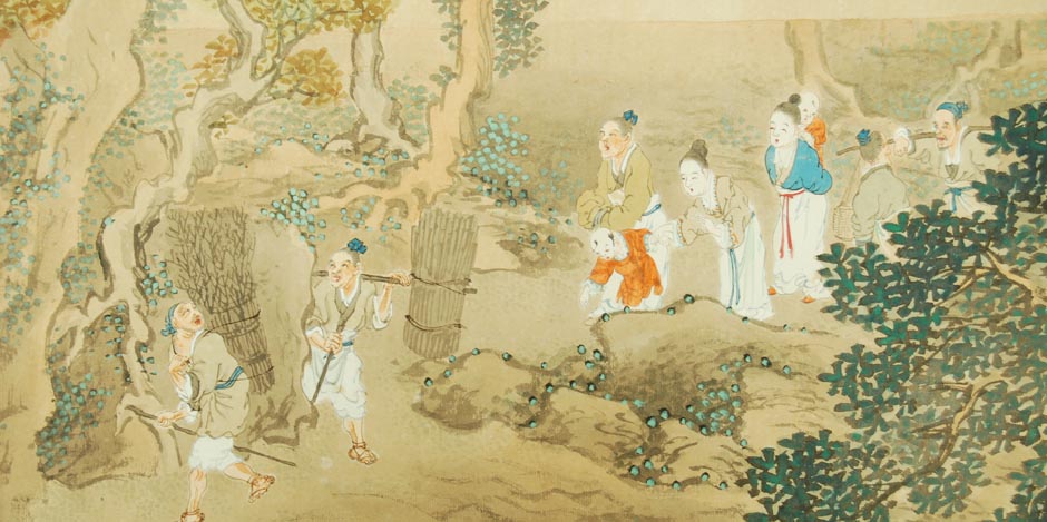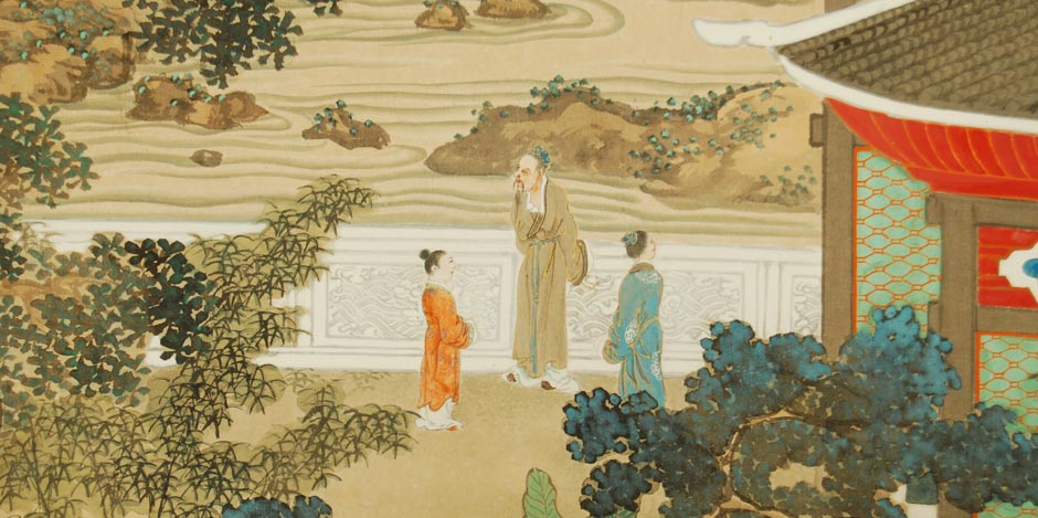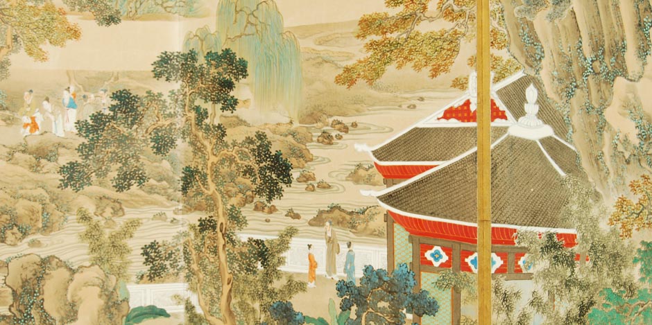 Vintage Japanese Screen – Literati Landscape Painting, 20th Century